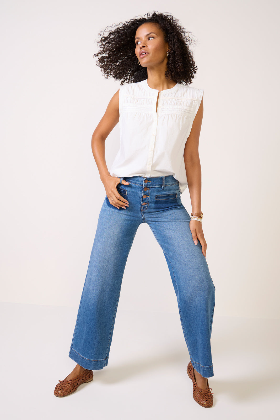 Crafted in lightweight cotton. the Alyssa Sleeveless Shirt by EVEREVE features front button closures. yoke detailing. and a relaxed silhouette.