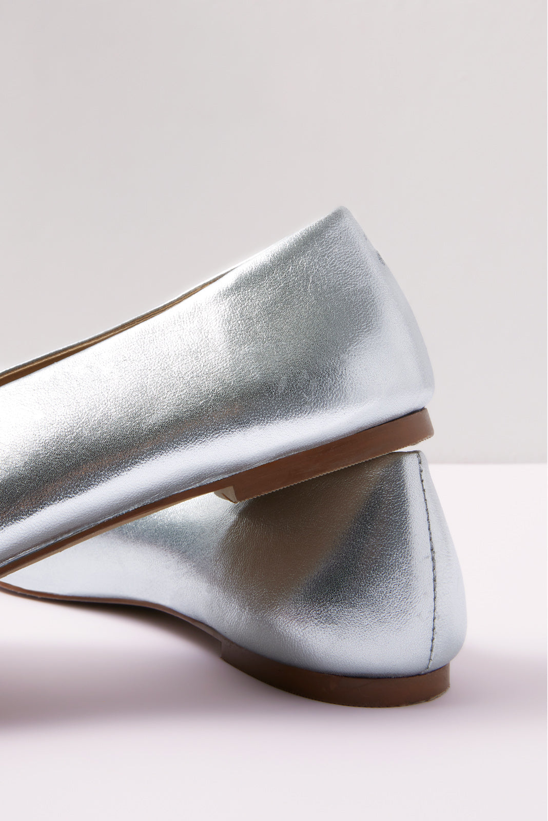 These metallic ballet flats by Seychelles will add a chic touch to any look. crafted in soft silver leather with an almond-shaped toe.