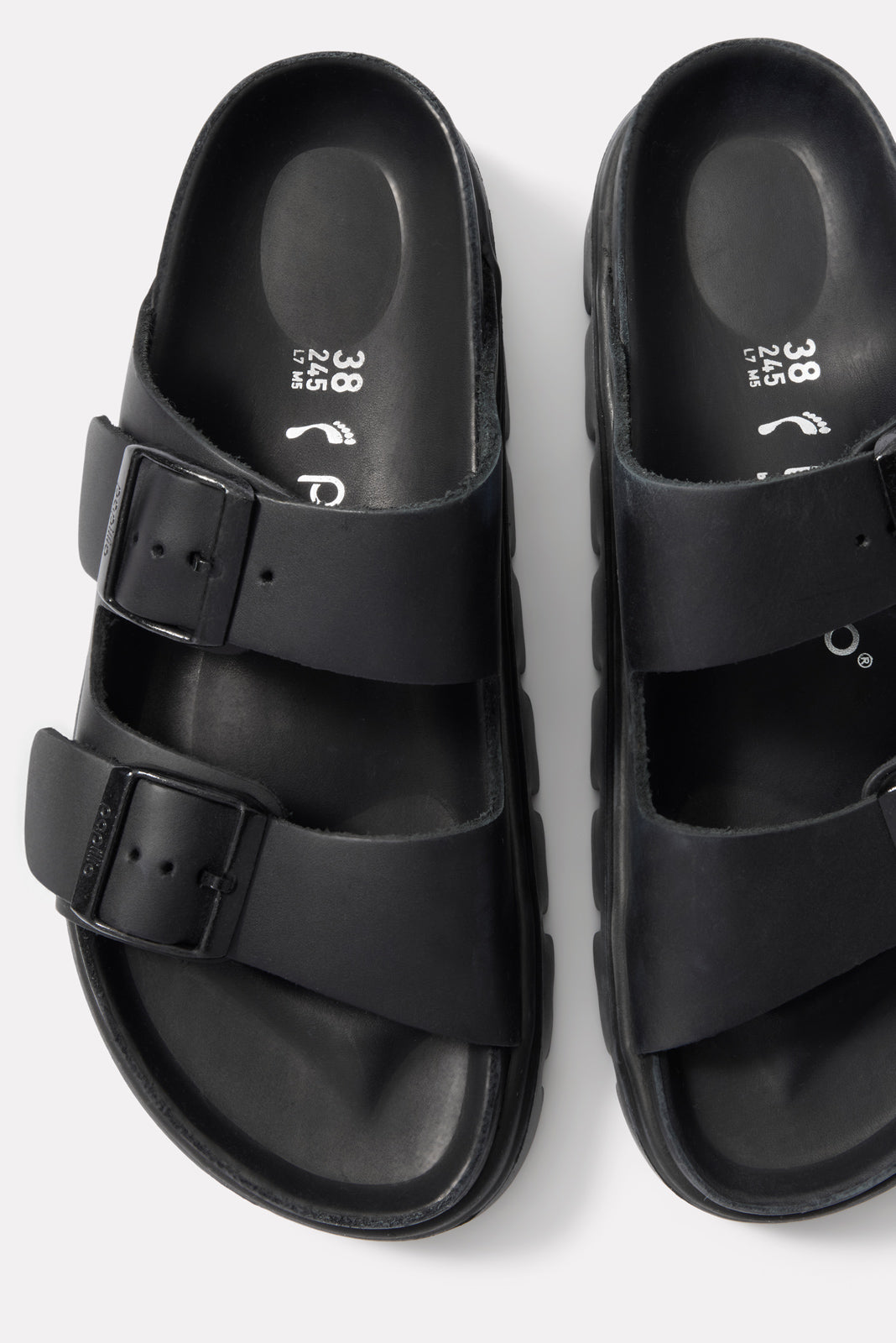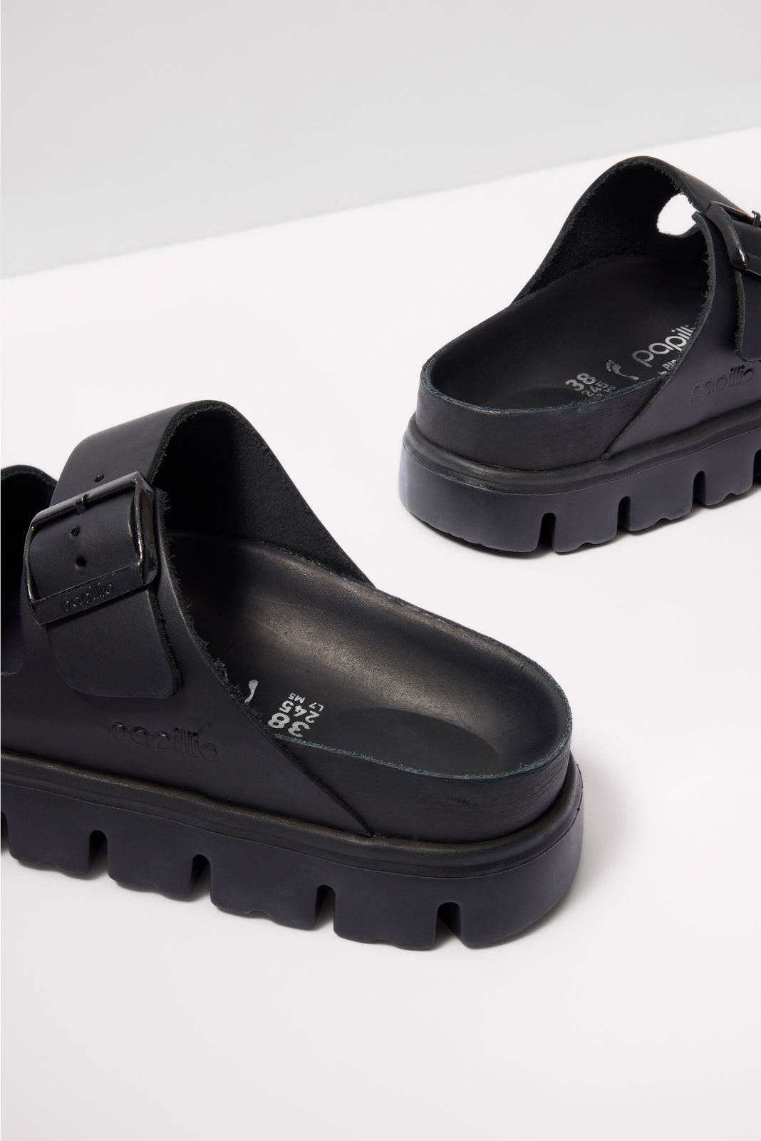 A chunky platform sole takes these Birkenstock Arizona sandals to the next level. featuring adjustable buckle straps and a comfortable footbed lined with soft Nappa leather.