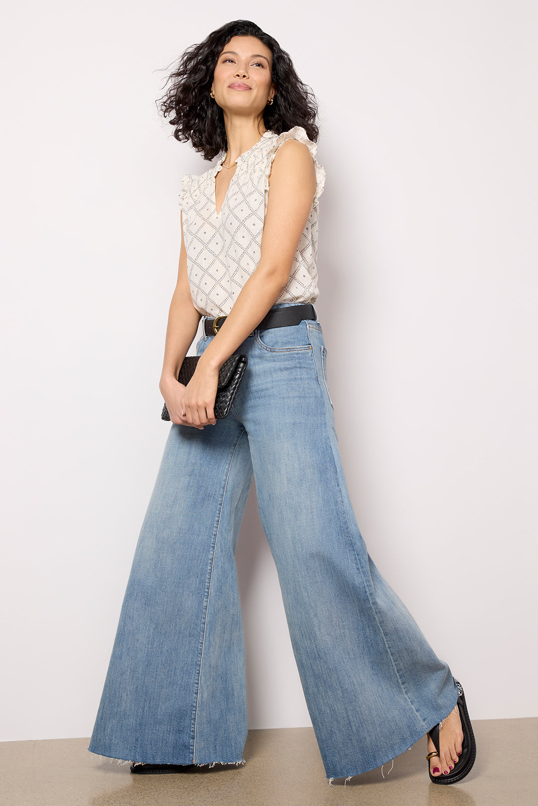 Finished in an airy linen blend. the Arlene Top by Rails features a flowy. sleeveless silhouette with a split neckline. smocked shoulders. and ruffle details.