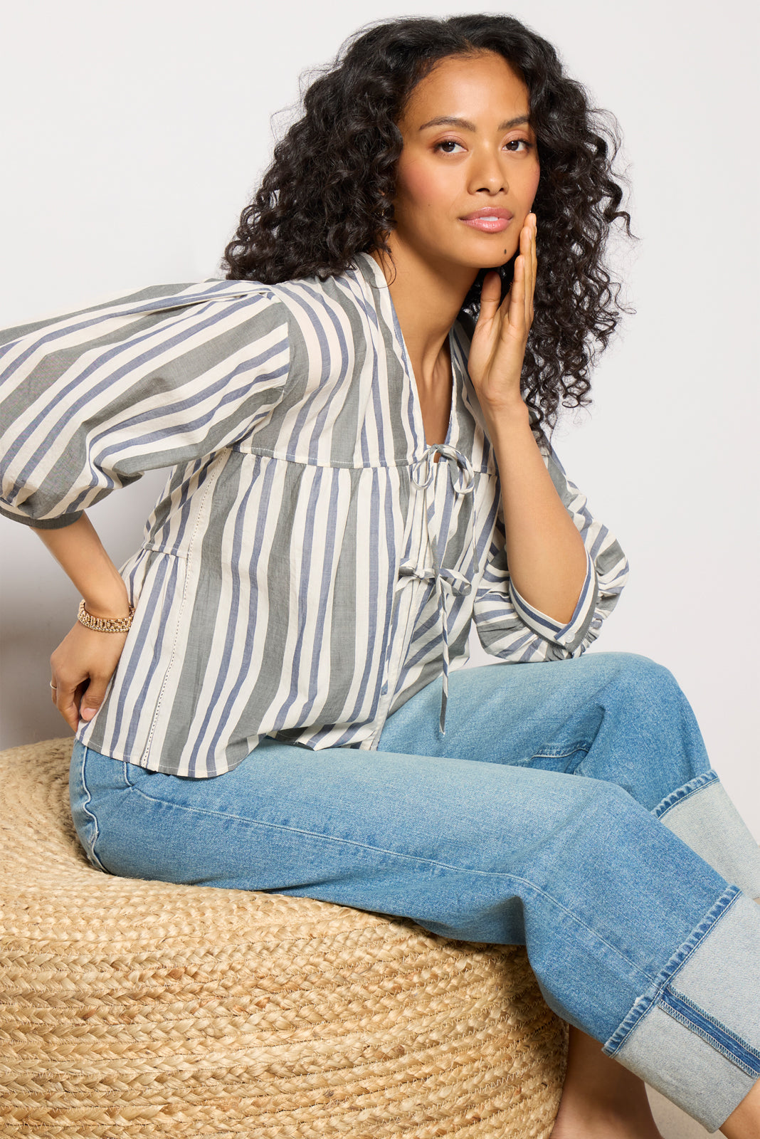 Crafted in a handloom cotton. the Artist Overshirt by Emerson Fry features feminine front ties. three-quarter sleeves. and a cropped silhouette.