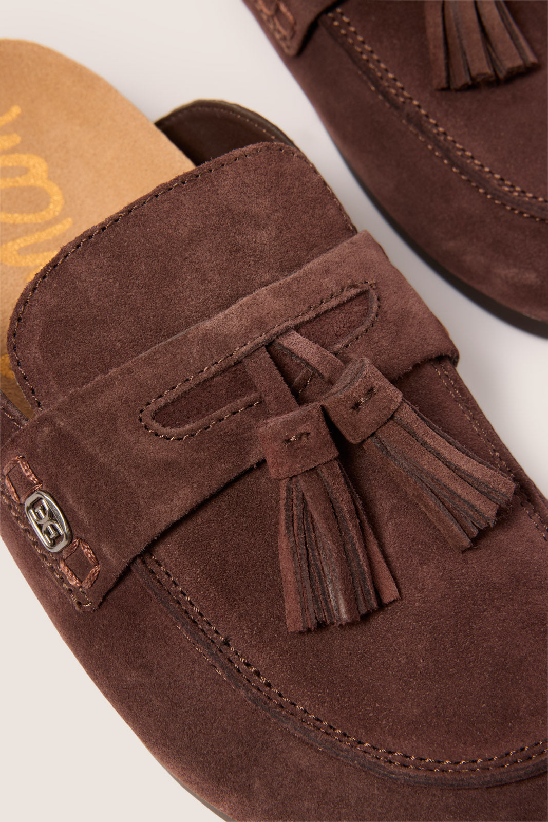 Slip into effortless style with the Astrid Mule by Sam Edelman. Finished in soft suede. these versatile flats feature a backless design. comfortable molded footbed. and tassel details for an elevated touch.
