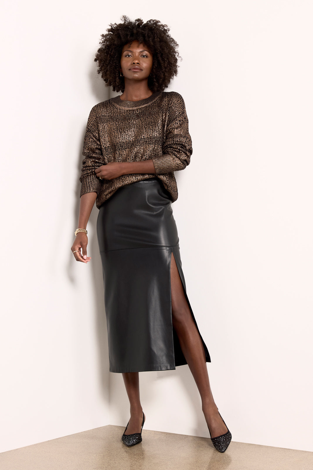 Add some shine to your sweater collection with the Atlas Pullover by EVEREVE. This chic sweater is crafted in a cotton-blend knit with a metallic coating and features a crewneck silhouette. dropped shoulders. and ribbed trim at the collar. cuffs. and hem.