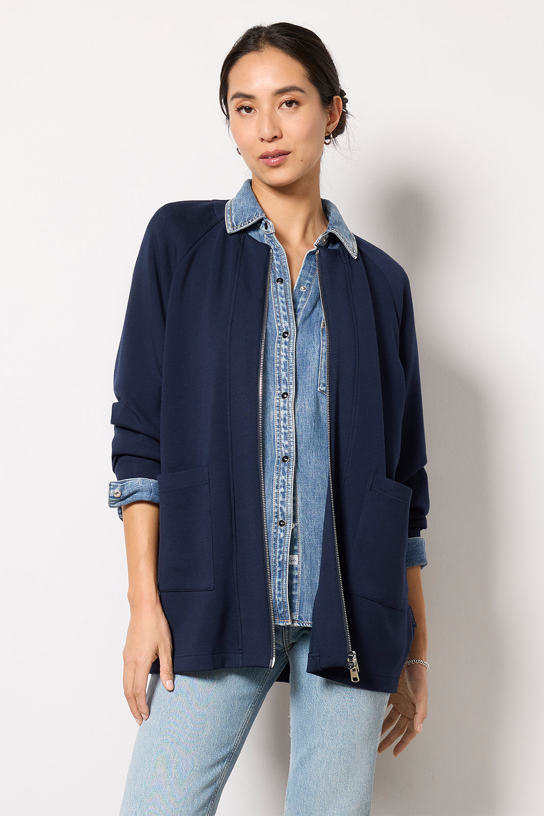 Finished in their signature DoubleSoft® fabric. the Augusta zip-up sweatshirt by Varley is the perfect throw-on-and-go layer. featuring an oversized. longline silhouette with front patch pockets. raglan sleeves. and a two-way zipper.