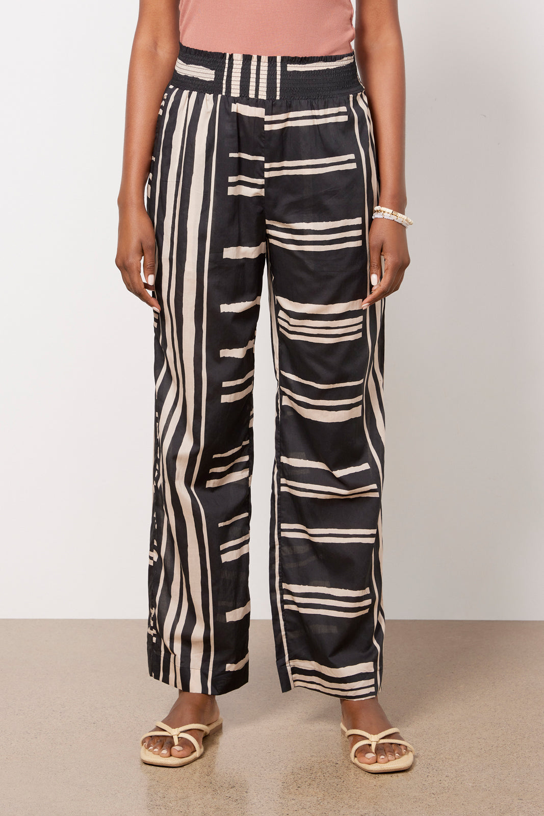 A flowy wide leg adds effortless style to these striped pants by Rails. crafted in lightweight cotton fabric with side pockets and a smocked elastic waist. Wear them from beach day to dinner date with a tank and sandals.