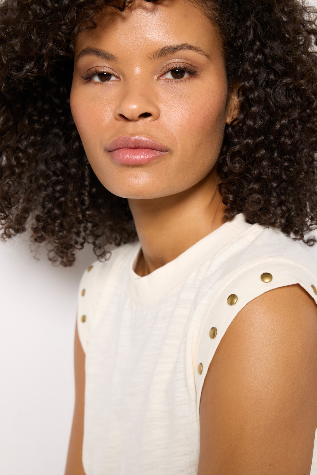 Crafted in a lightweight cotton. the Brinley Tee by EVEREVE features a crew neckline. studded sleeve details. and bra-friendly gussets at the armhole.
