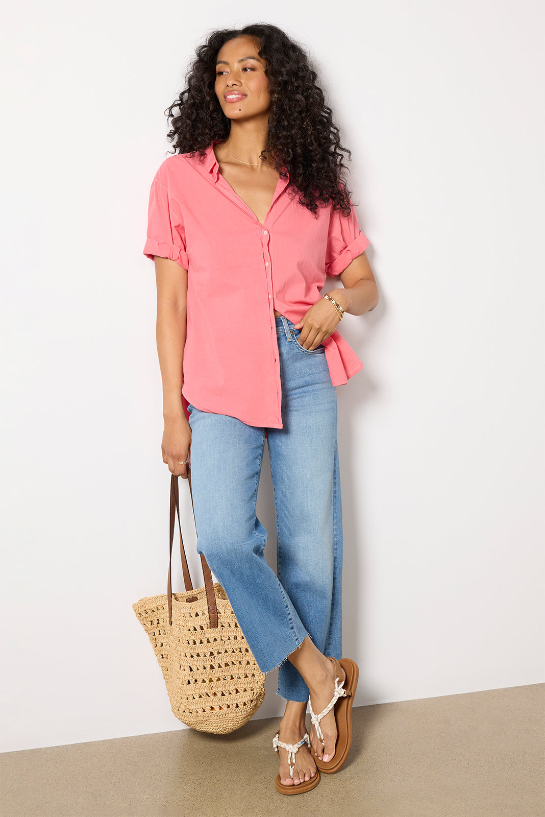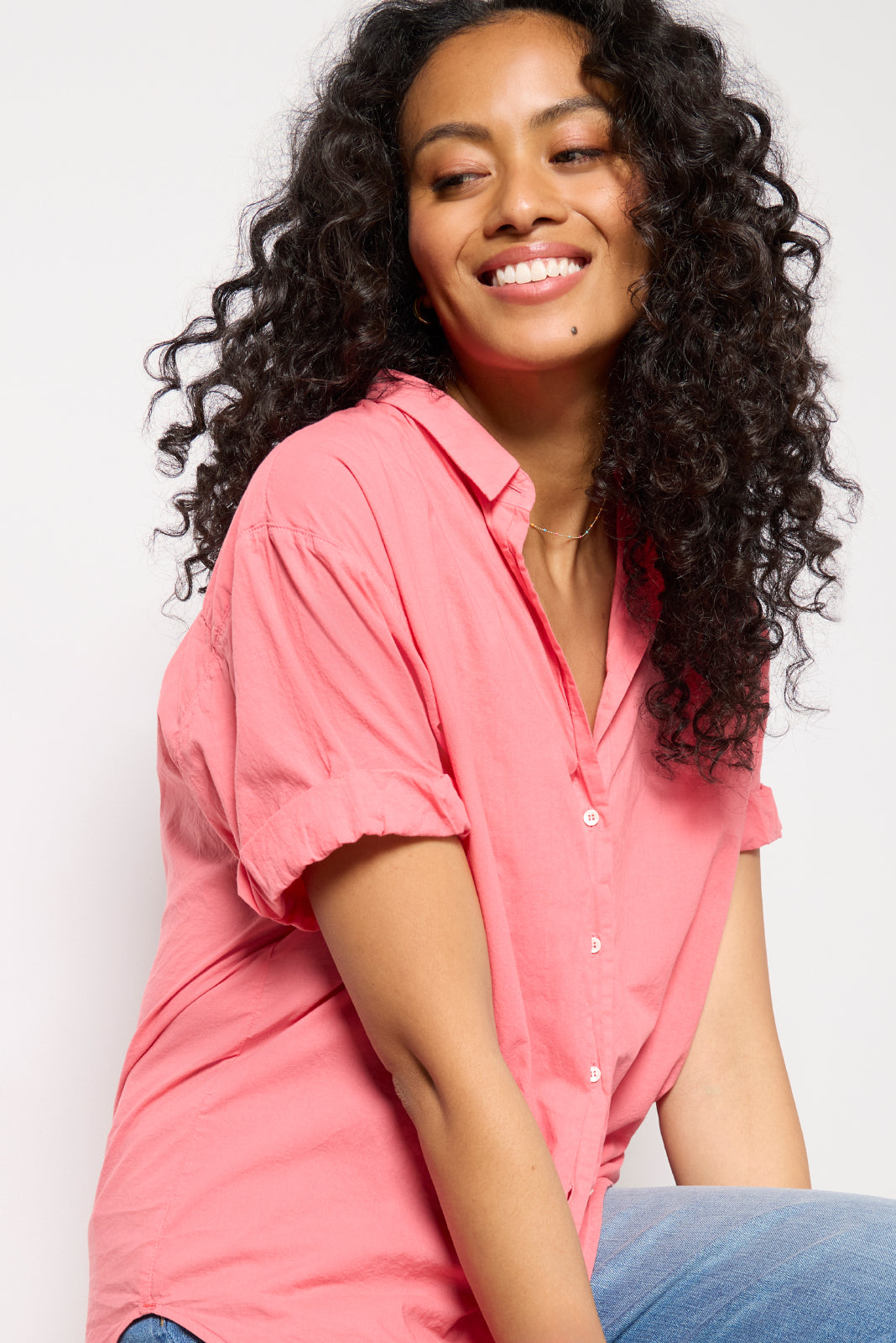 An effortlessly chic essential. the Channing button-down shirt by Xirena is crafted in lightweight cotton poplin with a relaxed fit. curved hem. and rolled short sleeves for a bit of edge. Style with a pair of cargo pants. or wear half-tucked into your favorite jeans.