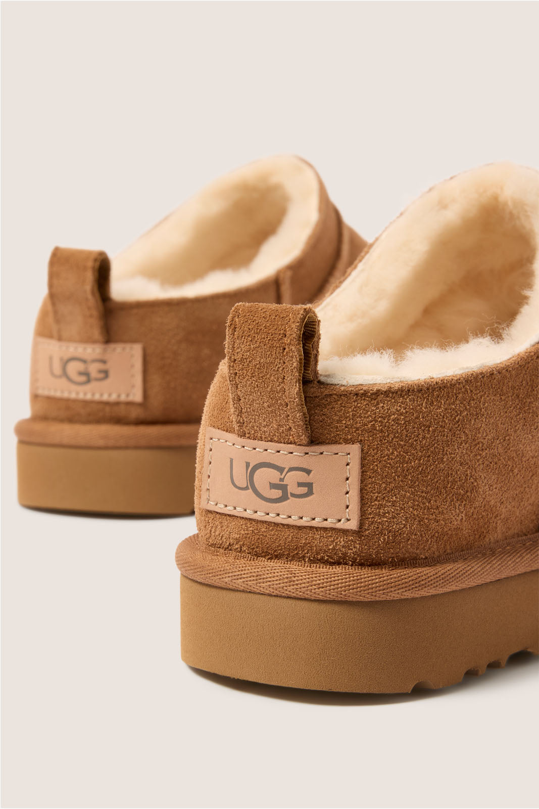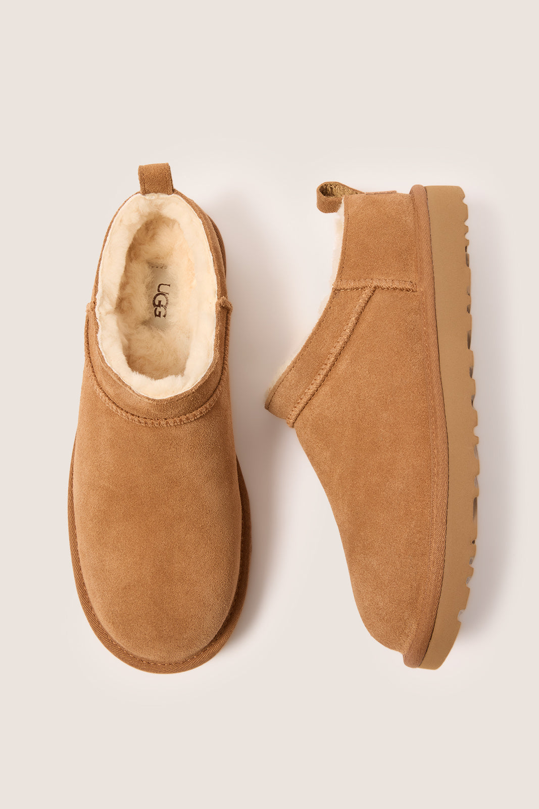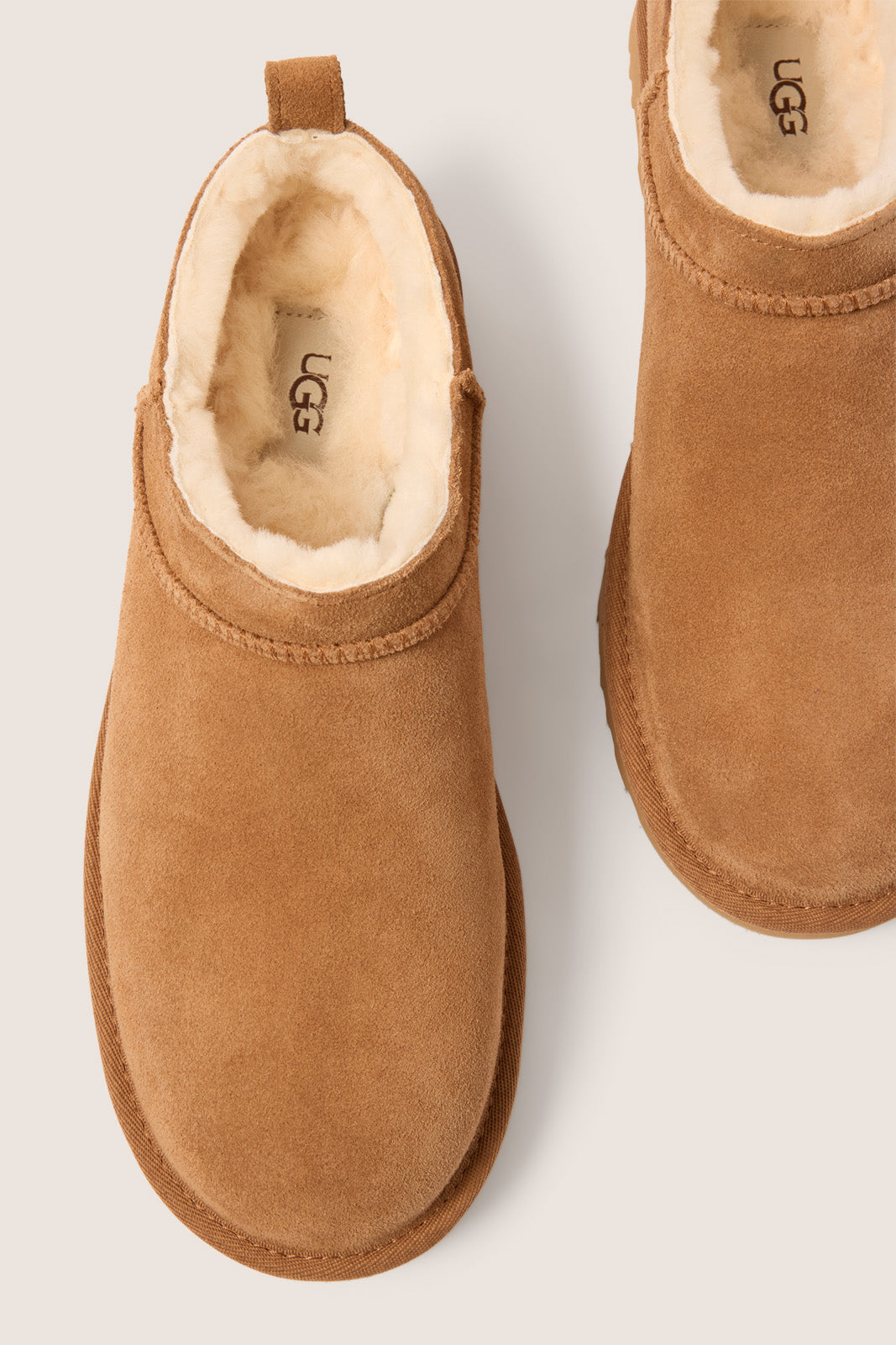 A modern take on the iconic silhouette. the UGG® Classic Micro boot features a low shaft height for easy on-and-off and a soft sheepskin exterior that's been pre-treated to protect against water. Finished with their signature plush lining. you'll be wearing them all season long.