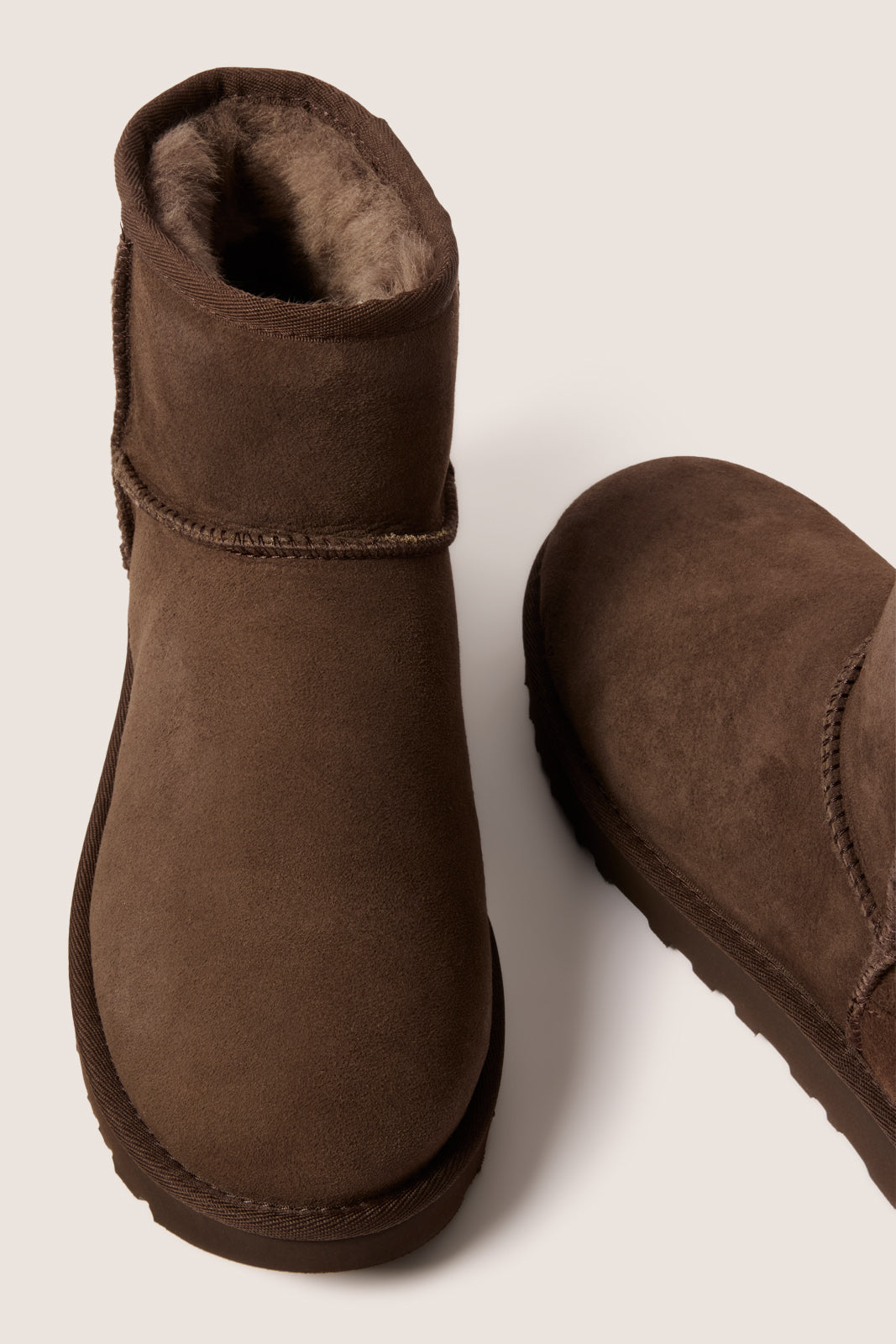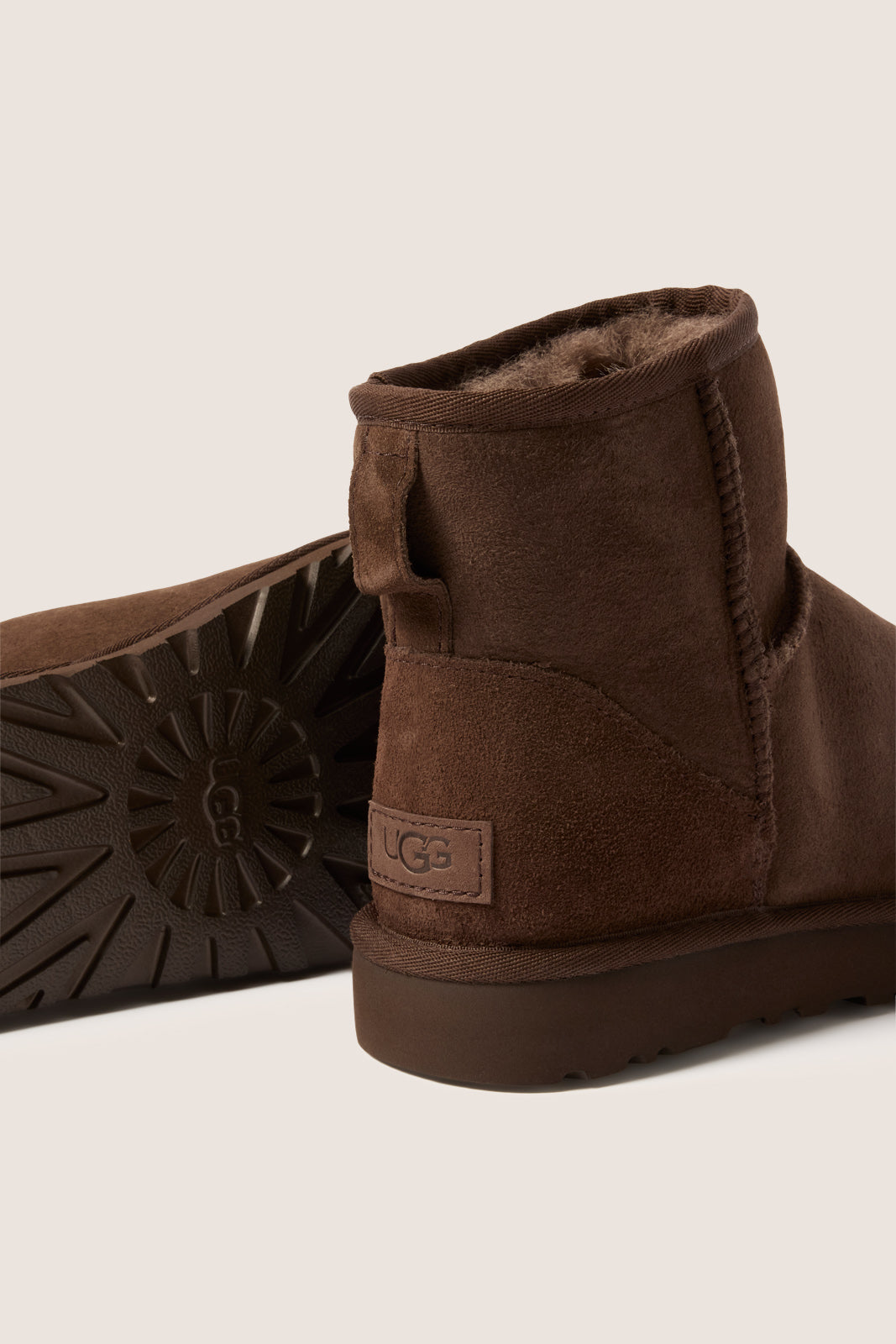 Stay cozy in the UGG® Classic Mini II boot. crafted with plush sheepskin lining. a lightweight sole. and a sheepskin exterior that's been pre-treated to protect against water.