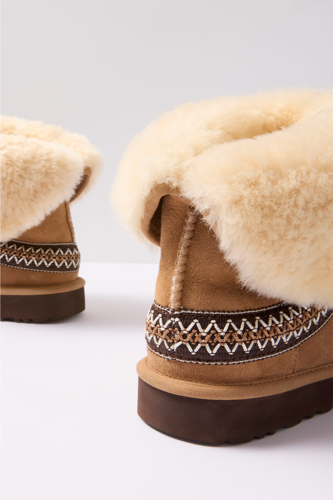 Made with Twinface sheepskin and signature UGGplushâ„?lining. you'll be wearing the Classic Short Crescent boot by UGG® all season long. These cozy boots feature a suede vamp. sugarcane EVA outsole. and braided detailing. The shaft can be folded down to show off the plush interior or worn tall for extra warmth.