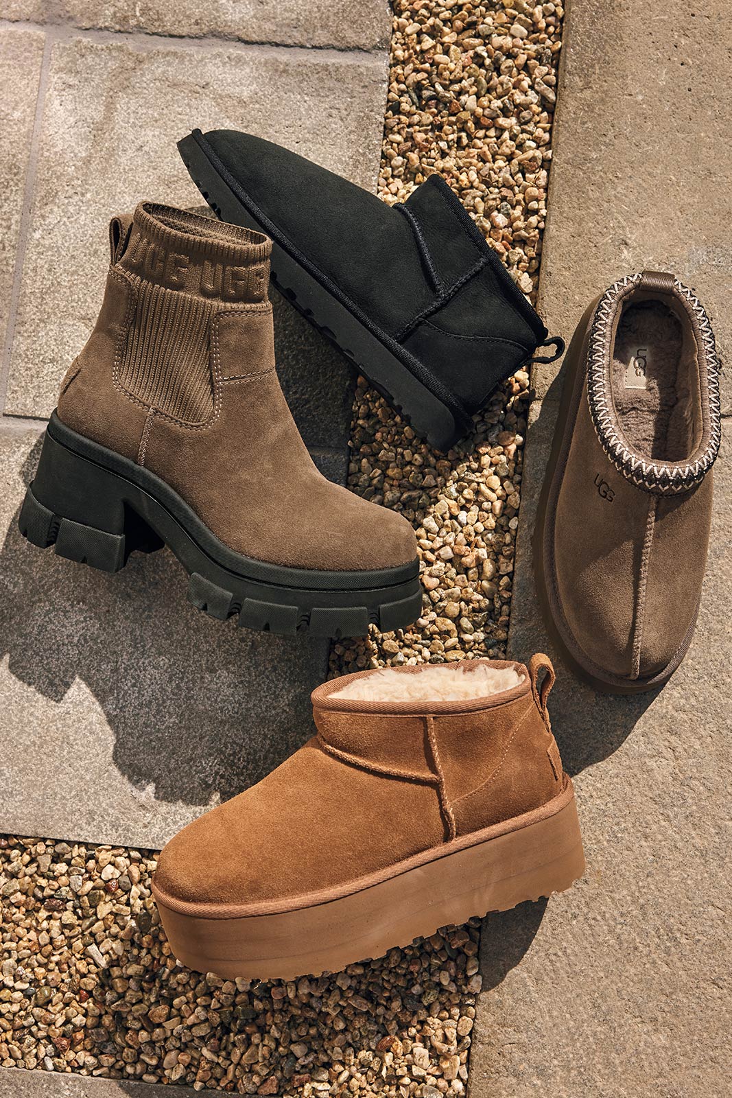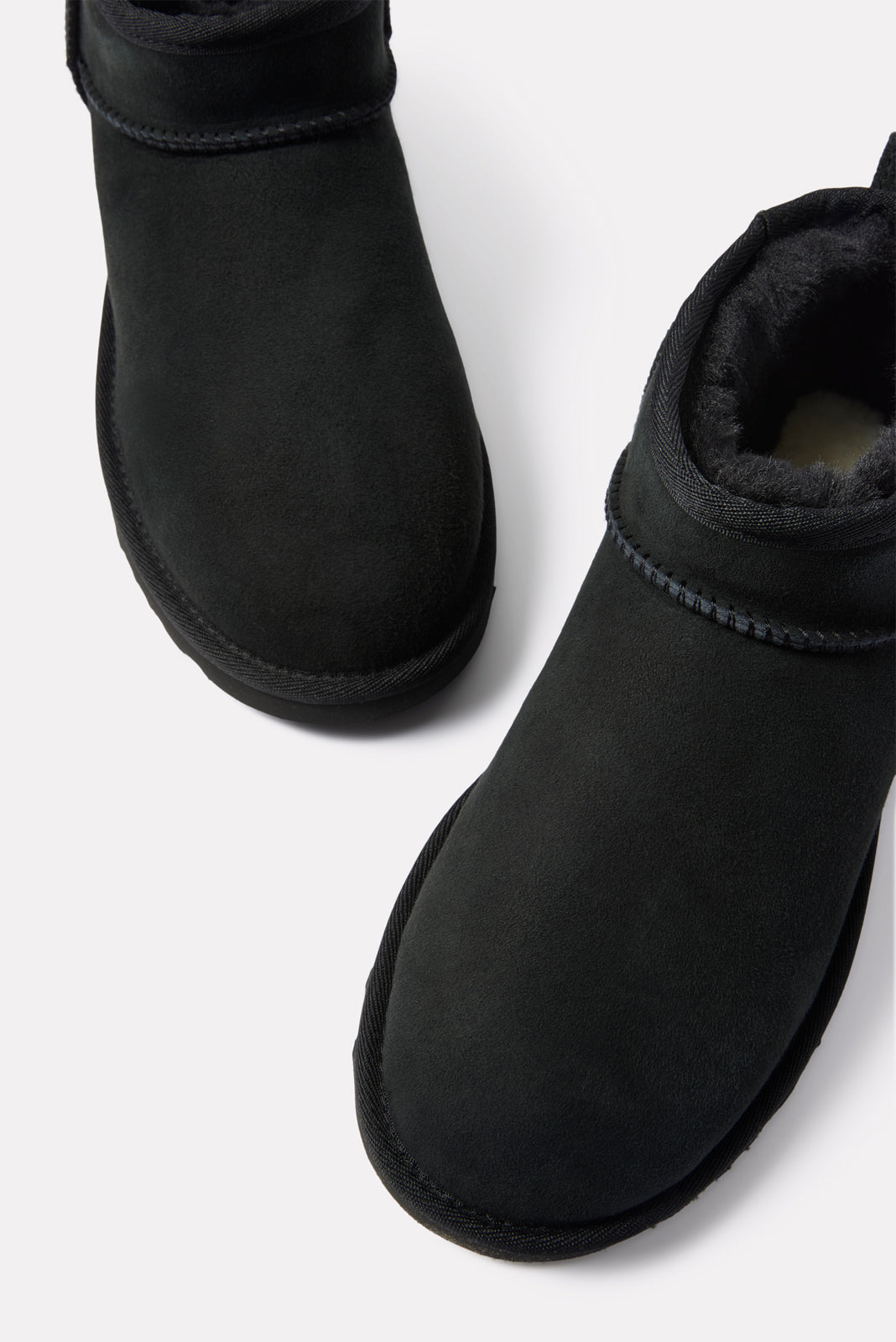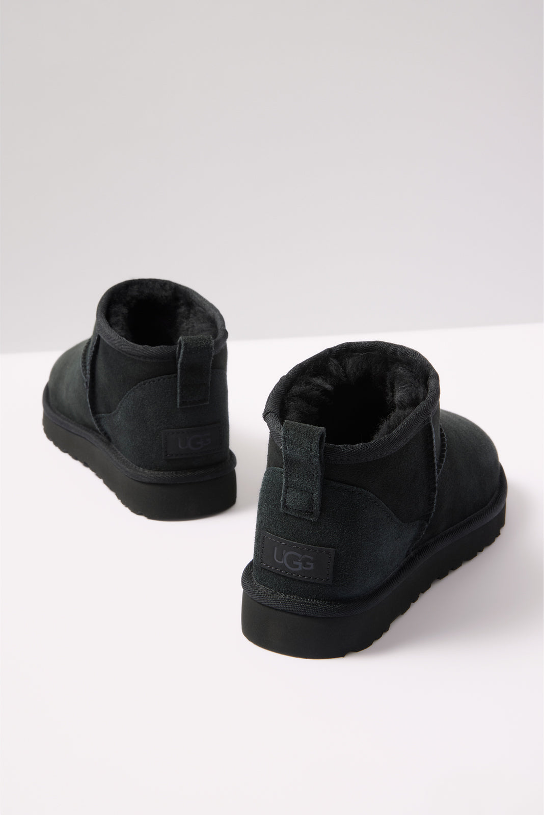 A modern take on the iconic silhouette. the UGG® Classic Ultra Mini boot features a low shaft height for easy on-and-off and a soft sheepskin exterior that's been pre-treated to protect against water. Finished with their signature plush lining. you'll be wearing them all season long.