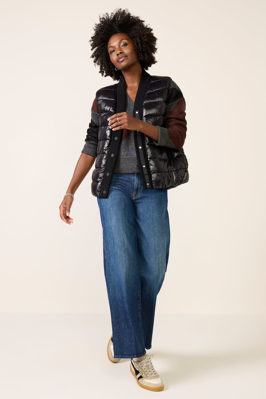 Stay warm and stylish with the Colwyn gilet by Varley. Finished in lightweight quilted nylon. this padded vest features side pockets and a knit placket with snap closures.