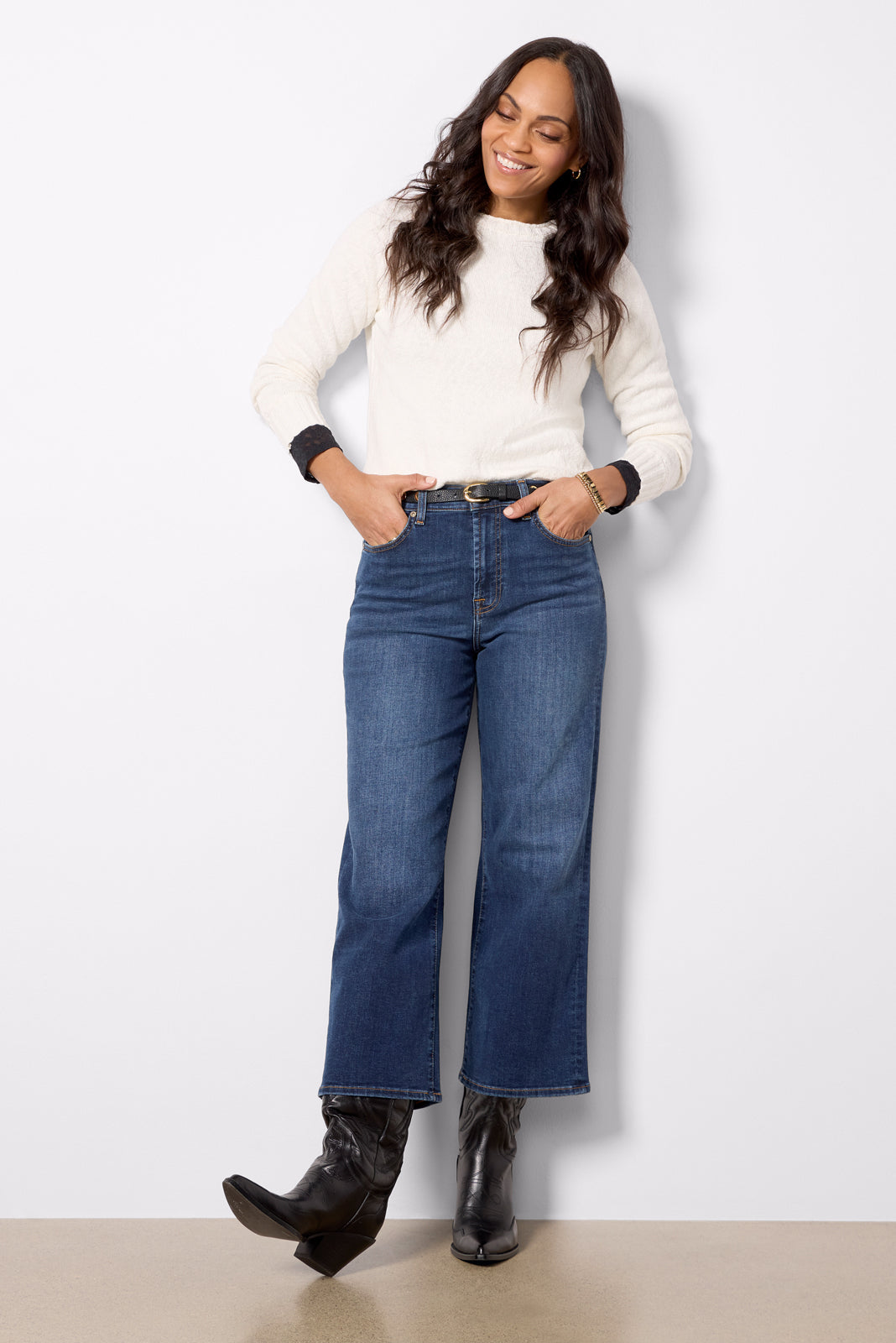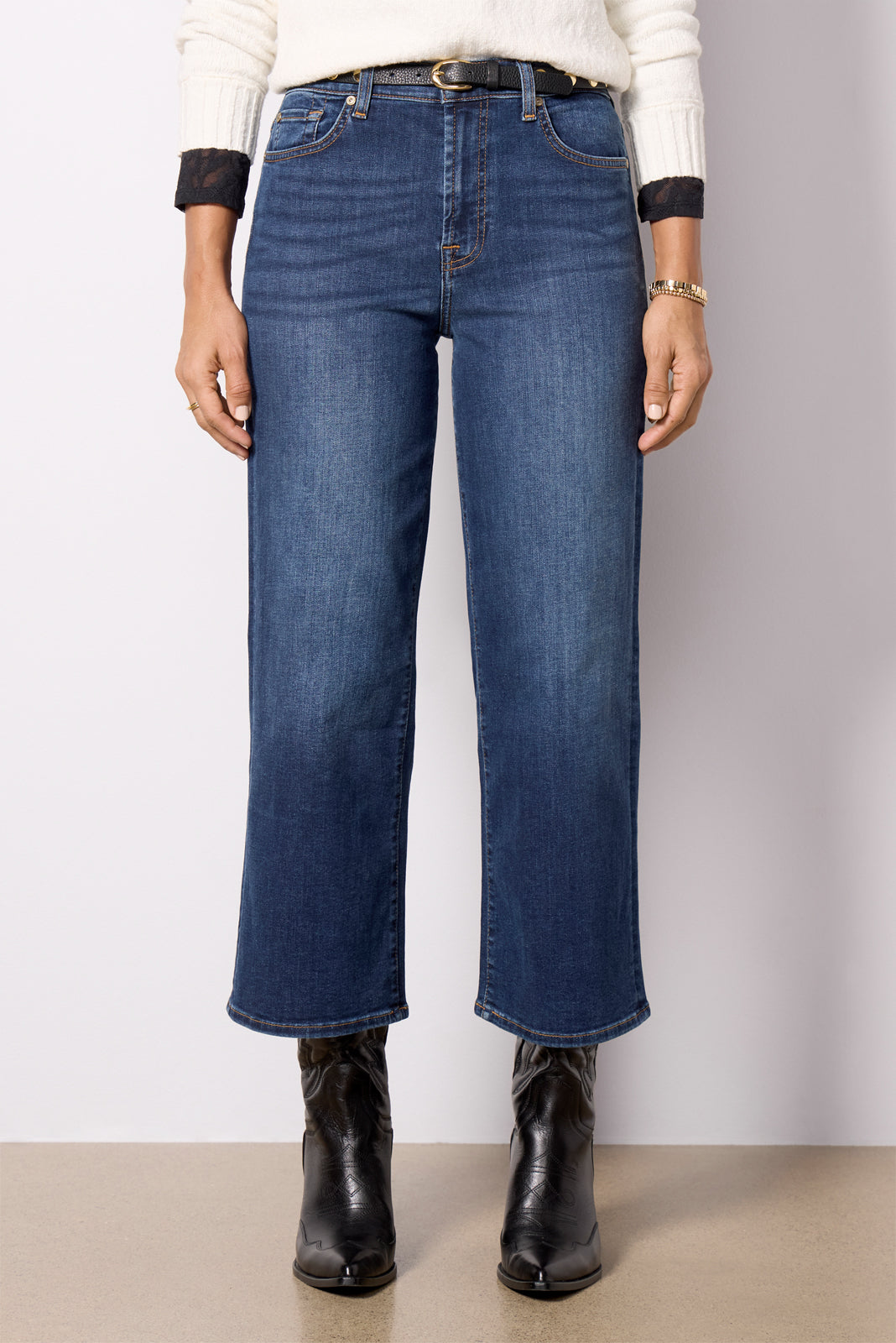 A cropped wide leg creates the chic silhouette of these 7 For All Mankind jeans. Perfect for day-to-night wear. the Alexa features ankle-length hems and soft stretch denim fabric in a classic blue wash.