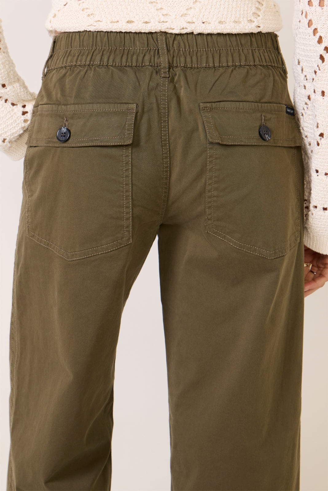 Finished with utility-style pockets. the Cruiser twill pants by Sanctuary feature a relaxed. full-length leg. mid-rise waist. and back elastic waistband.