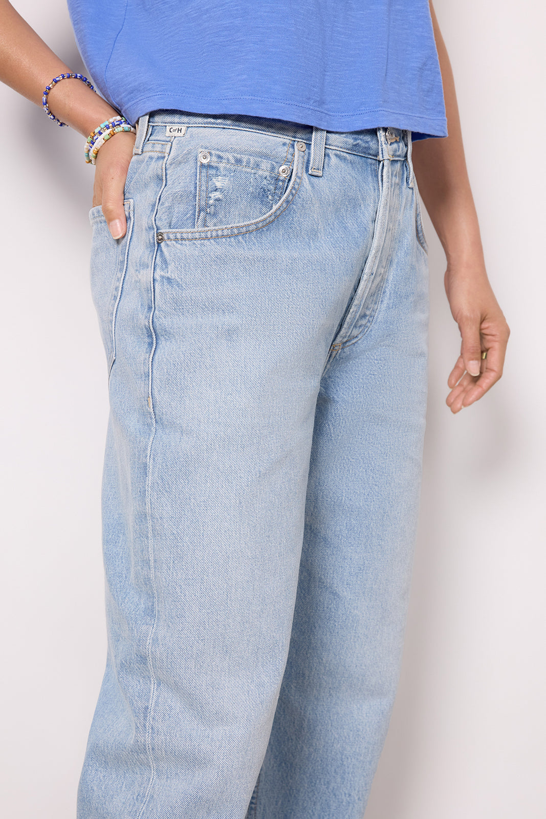 The Dahlia Baby Roll Jean from Citizens of Humanity is crafted in a non-stretch cotton fabric and features a relaxed vintage leg that slightly tapers down to the ankle. Finished with a slight roll. these jeans pair perfectly with all your favorite looks.