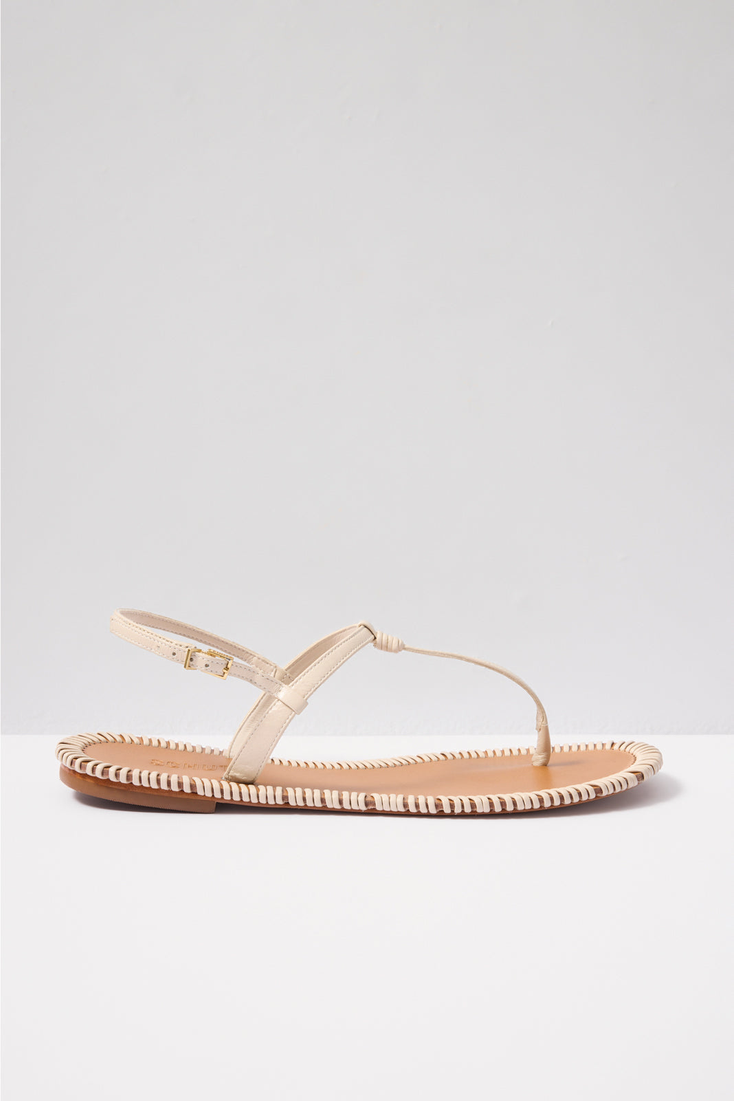Complete any summer look with the Elsha Sewing flat sandal by Schutz. These leather thong sandals feature a T-strap design. adjustable buckle closure. and whipstitch detailing around the sole.