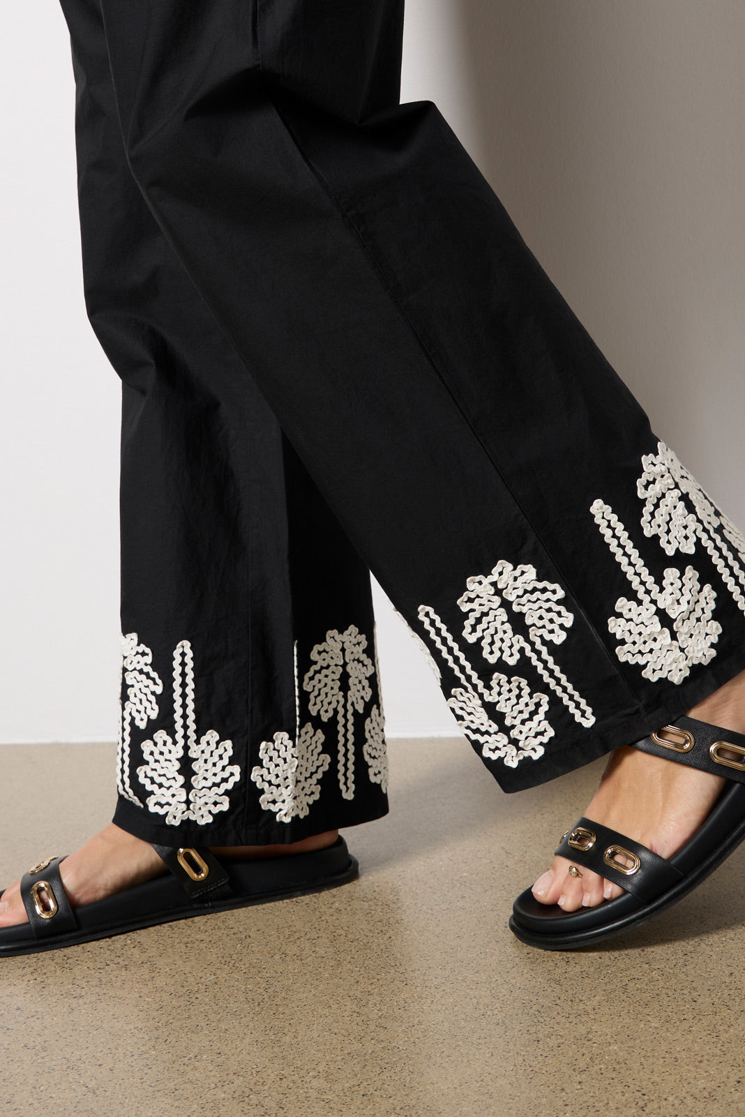 Top off your vacation wardrobe with the Emmie wide leg pant by Rails. finished in cotton fabric with a drawstring waist and palm embroidery at the hems. Pair with the matching Pari Blouse for a resort-ready set.