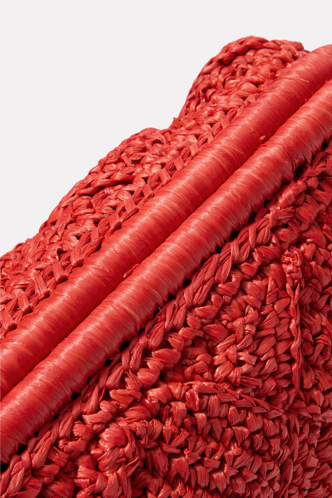 Give your look a touch of texture with this boho-inspired clutch by BTB. featuring a woven raffia exterior. framed top. and lined interior—perfect for carrying from day to night.