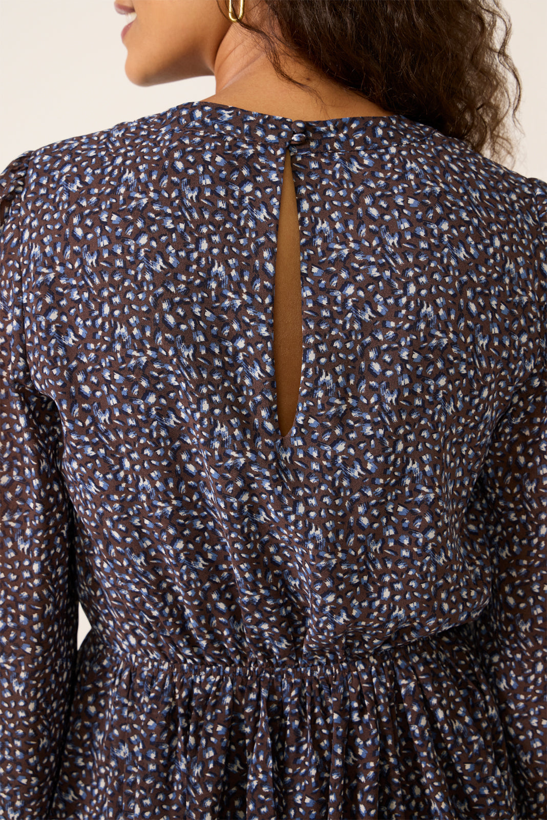 Perfect for any occasion. this printed mini dress by Z Supply features a short A-line silhouette with a defined elastic waist. back keyhole button closure. and long sleeves.