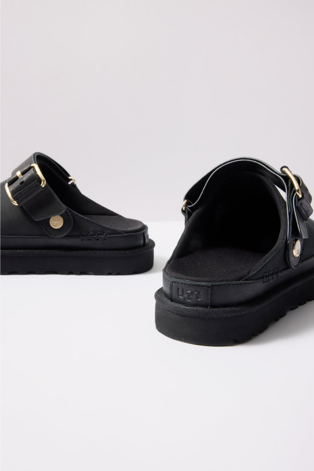 The Goldenstar Villa Clog by UGG® will be your new go-to for everyday wear. featuring a Nubuck upper. lightweight platform sole. and round toe. The adjustable buckle strap swivels to wear behind the heel or stacked on top for a slip-on option.