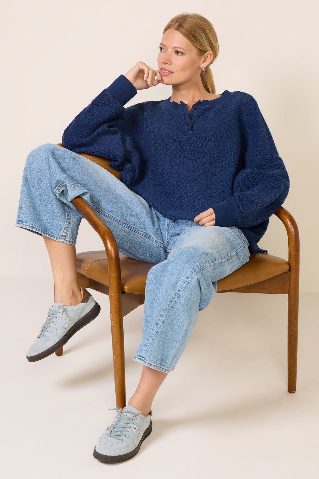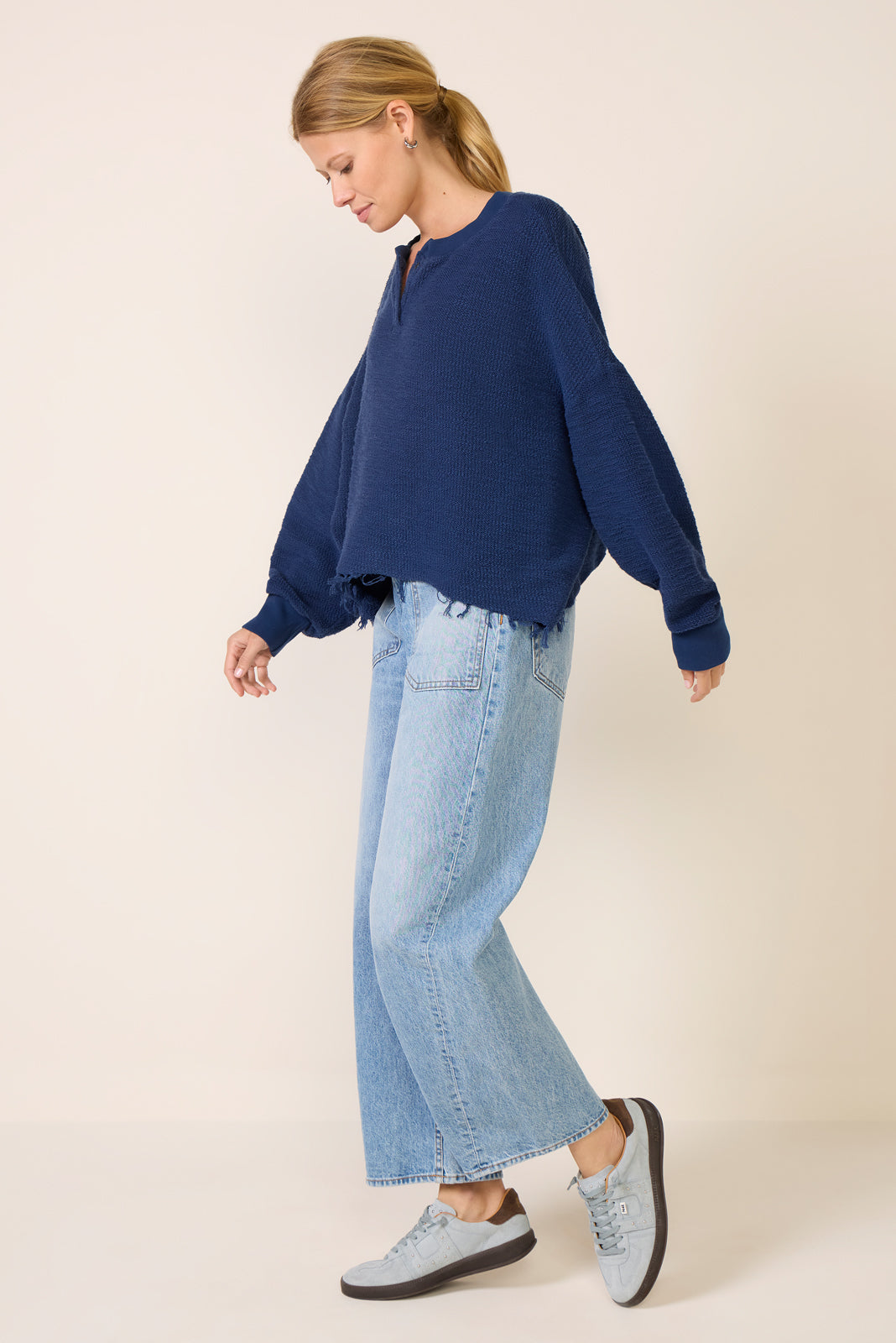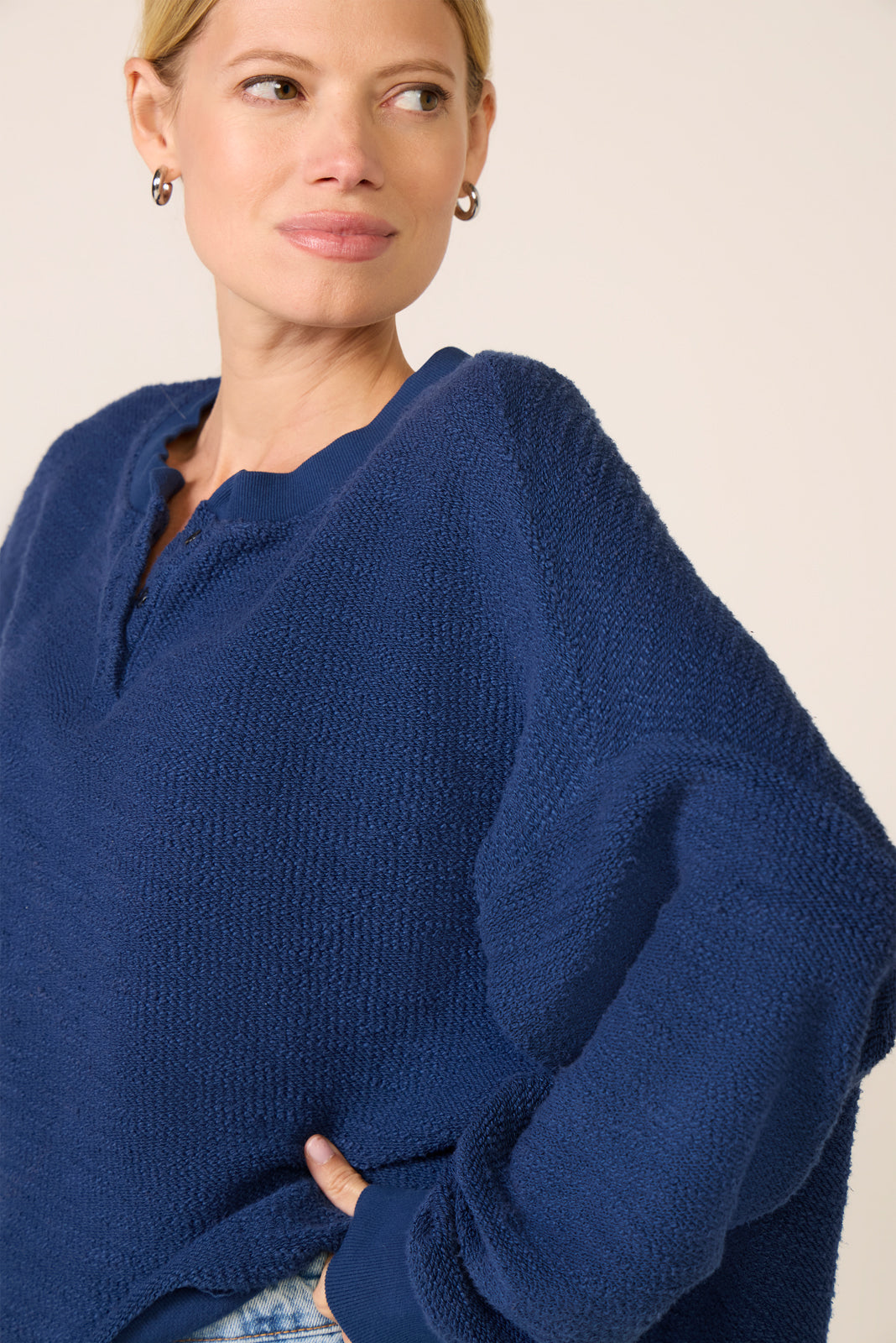 Designed for all-day comfort. the Great Jones henley sweatshirt by ASKK NY is finished in a textured cotton knit and features a slouchy. relaxed silhouette with a raw-cut hem for a lived-in feel.
