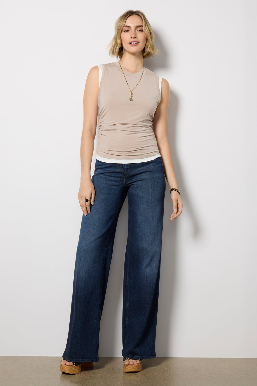 A two-in-one design creates the effortless layered look of the Hadley Twofer tank top by EVEREVE. finished in soft knit fabric with a crew neckline. ruching at the waist. and contrasting attached layers at the shoulders and hem.