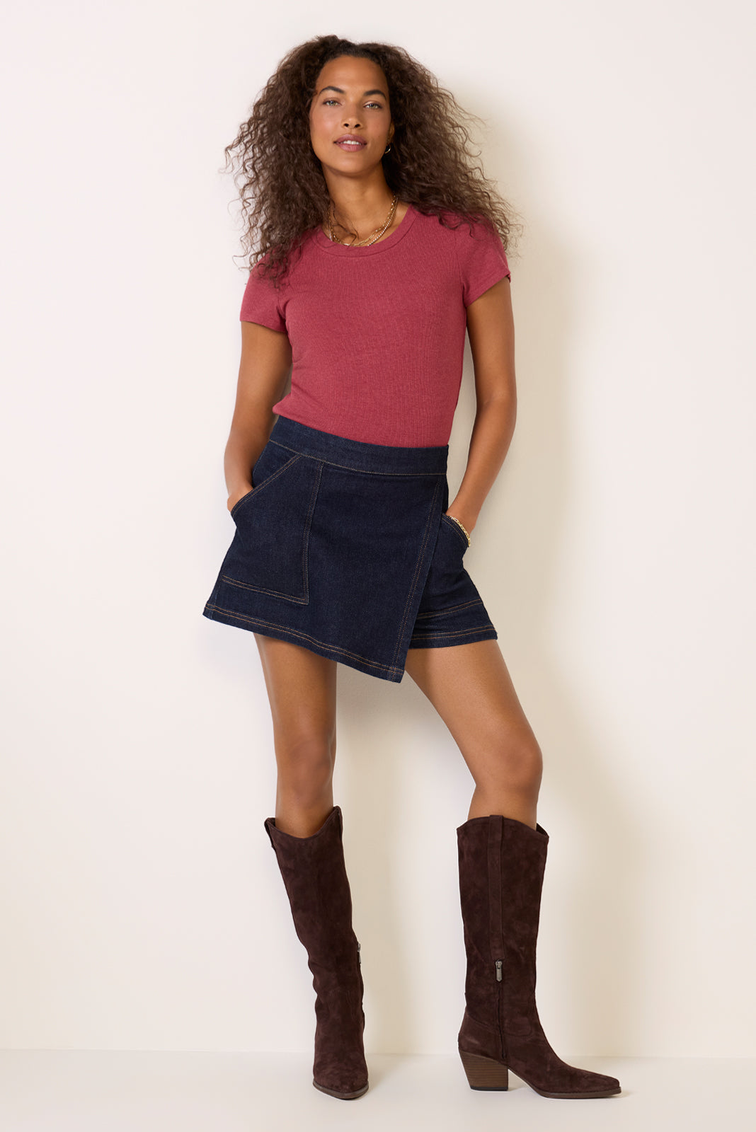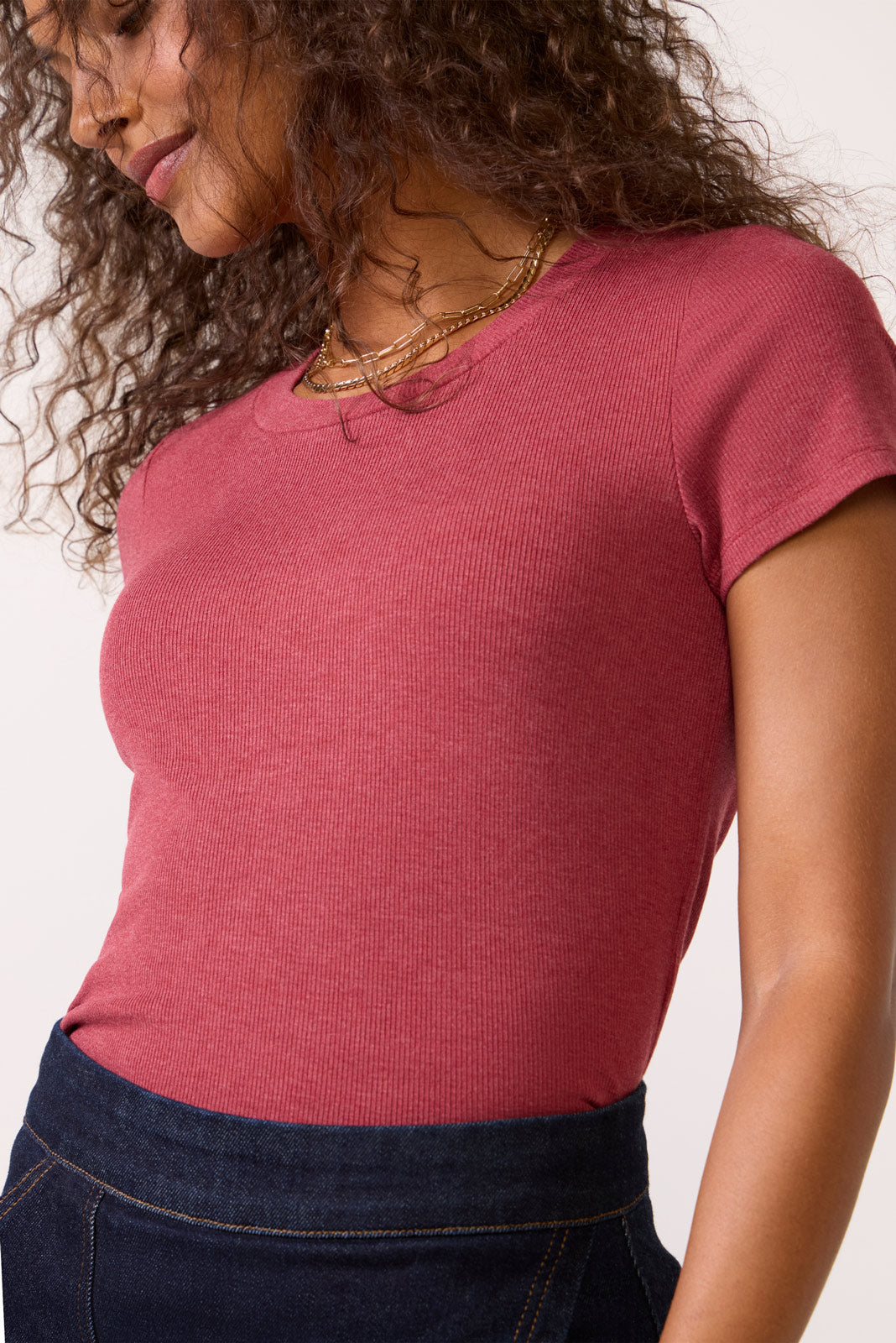 This versatile tee by LNA is the perfect wardrobe essential. crafted in soft rib knit fabric with a crew neckline. slim fit. and short sleeves.
