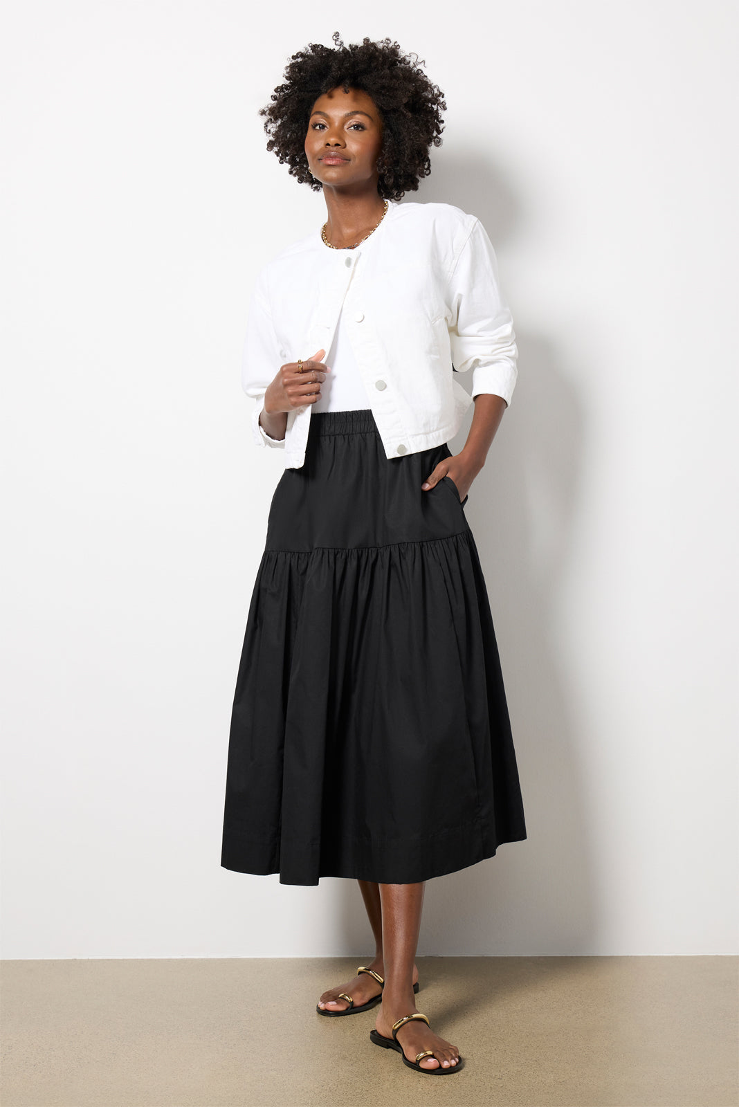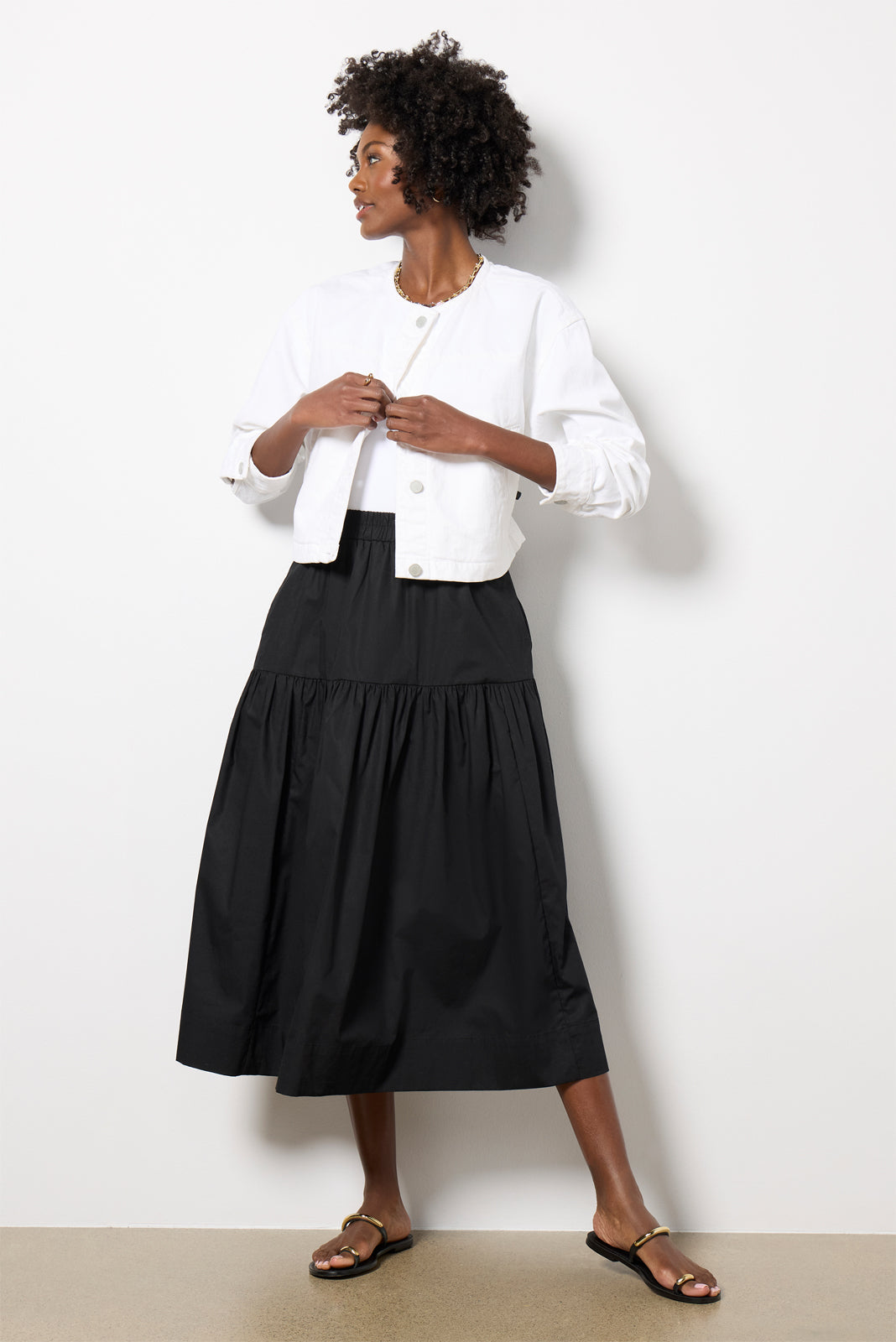 The perfect layer for all your warm-weather outfits. this barn jacket by BlankNYC is crafted in white-wash cotton denim and features a round neckline. silver front buttons. and a slightly cropped silhouette.