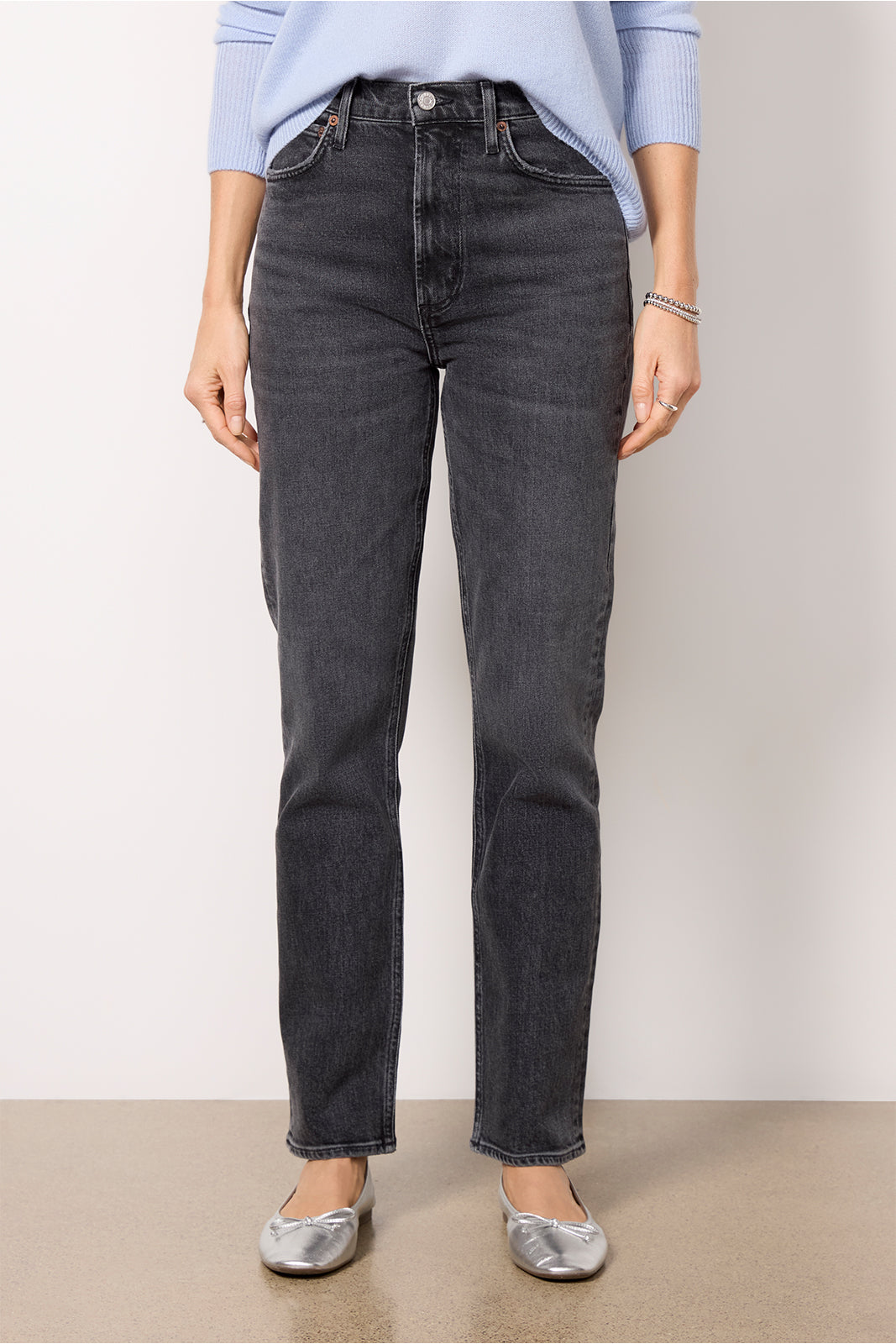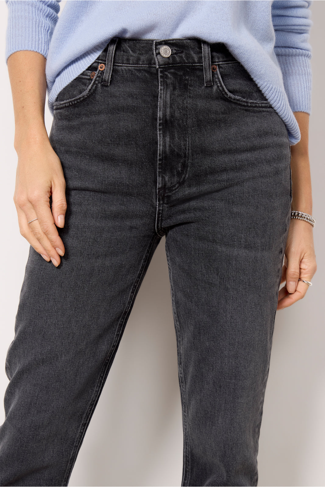 Crafted in sustainable cotton denim. the Stove Pipe jean from AGOLDE features a high-rise waist and a classic straight-leg silhouette with a full-length inseam.