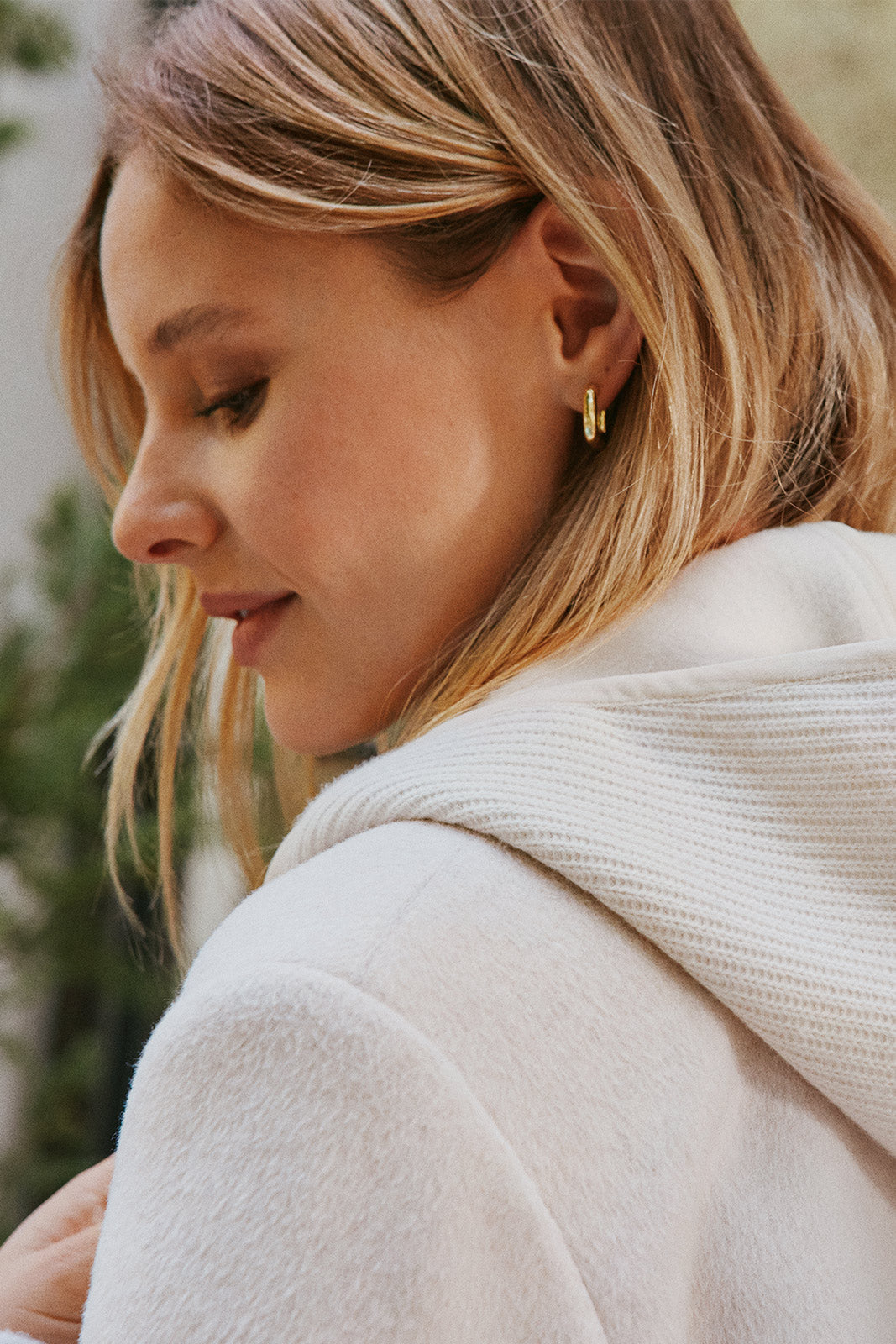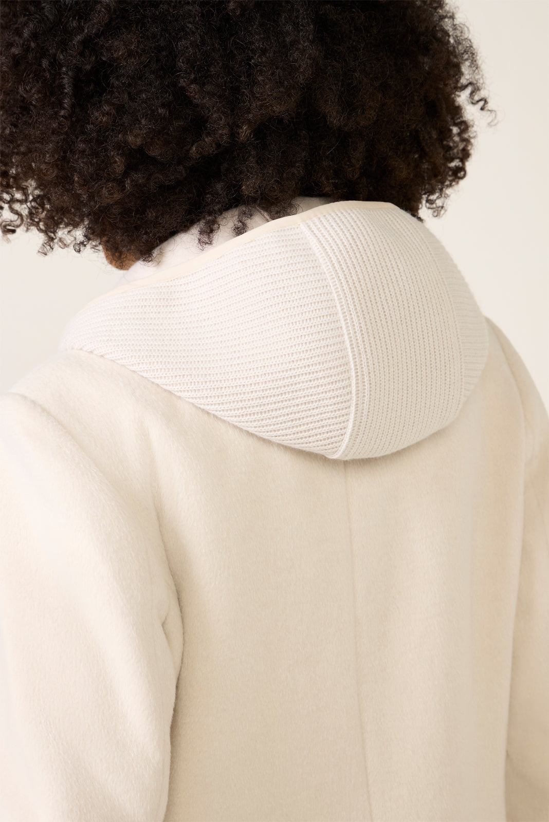 Elevate any cold-weather look with this stylish longline coat by EVEREVE. Designed with a notched collar. flap pockets. and front button closures. this polished coat features a removable. hooded rib-knit bib—making it as versatile as it is chic.