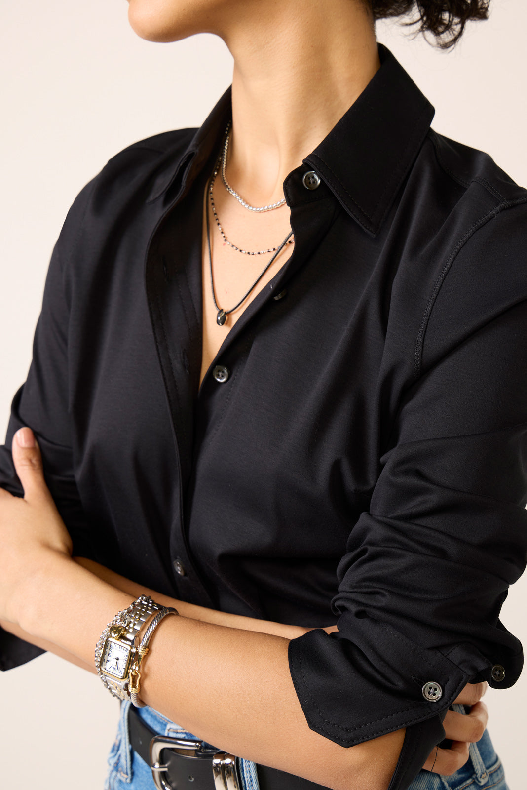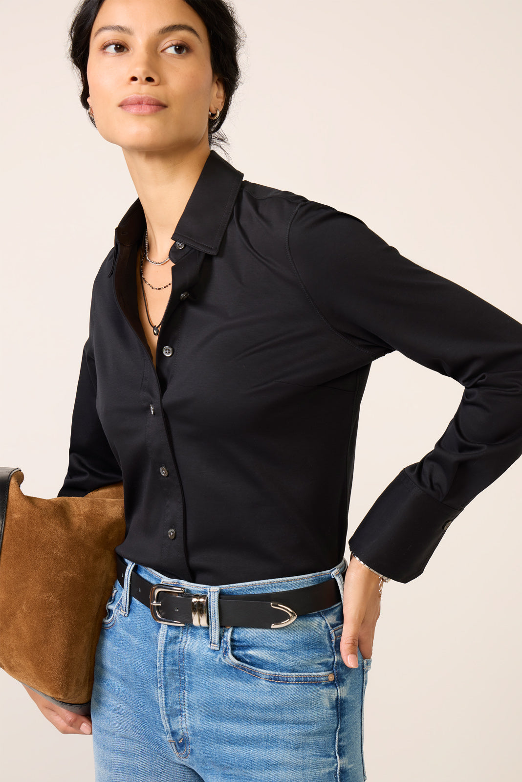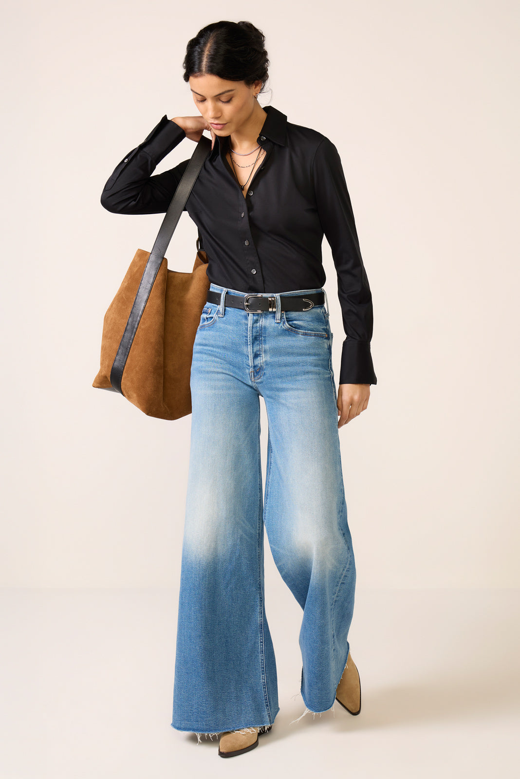 The perfect addition to your workwear wardrobe. the Jamie Shirt by Alex Mill features a soft cotton material. a point collar. front button closures. and a relaxed silhouette.