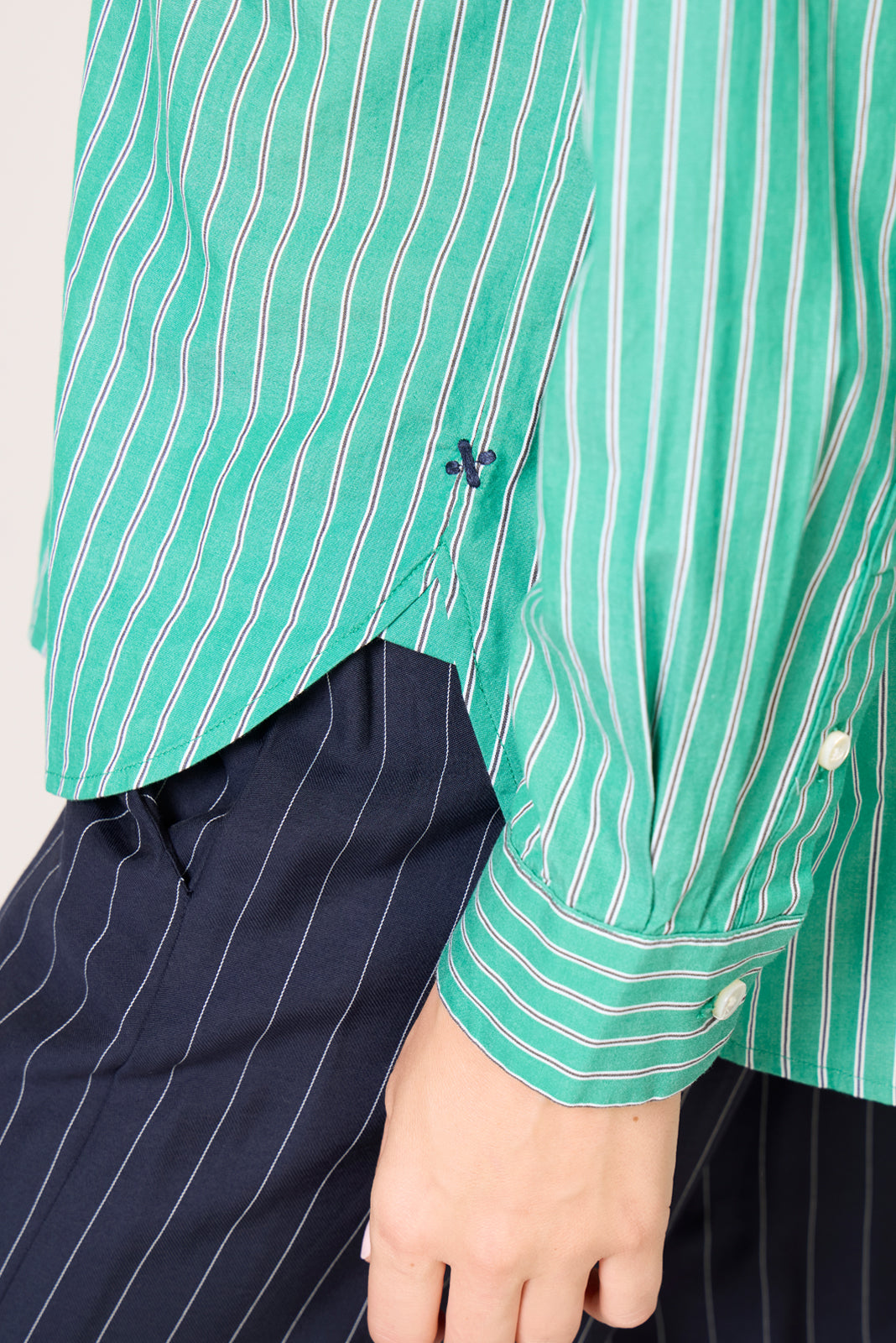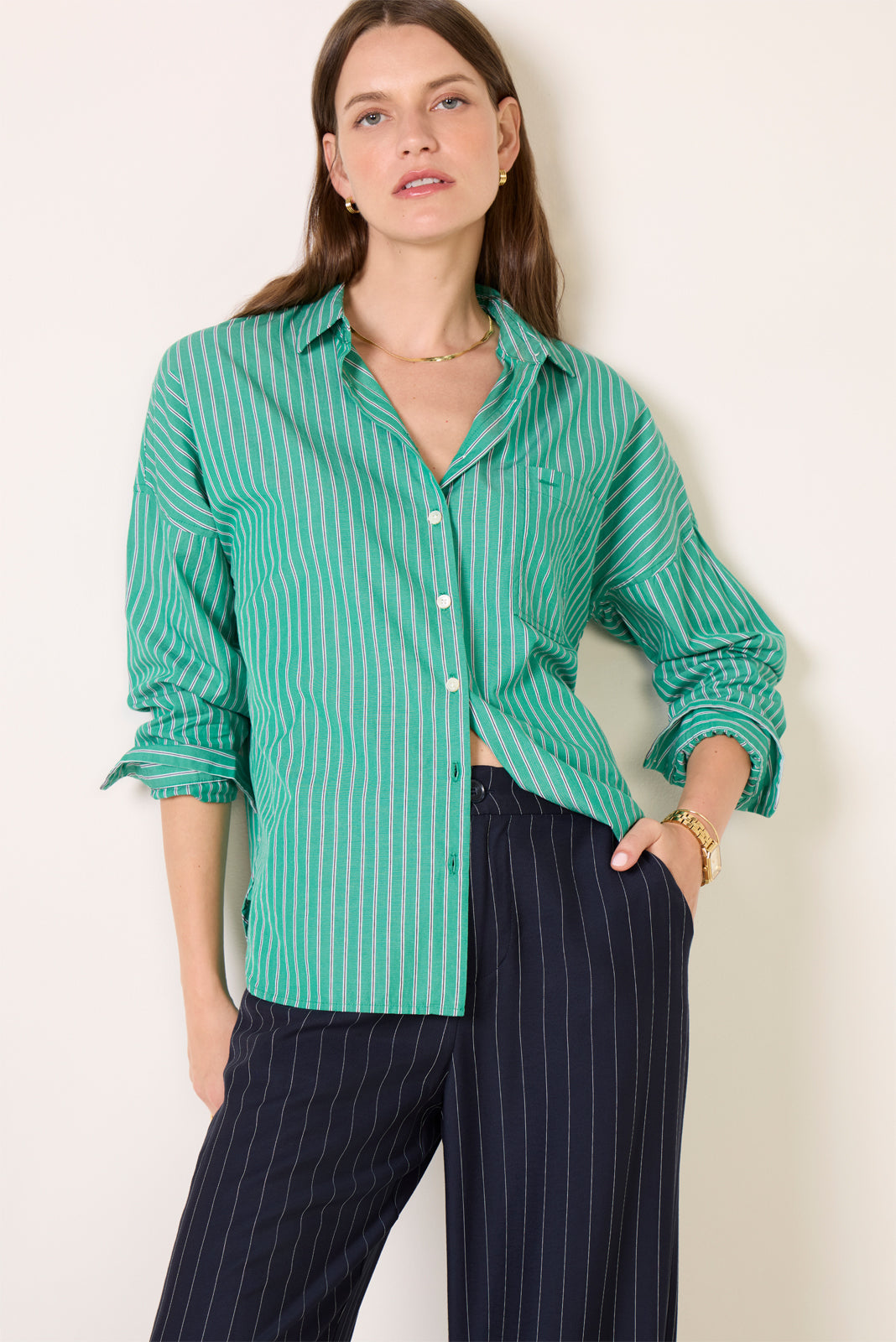 Say hello to your new favorite work top. The Jo striped button-down shirt by Alex Mill features a relaxed silhouette. left chest pocket. and cotton poplin fabric for a perfectly polished look.