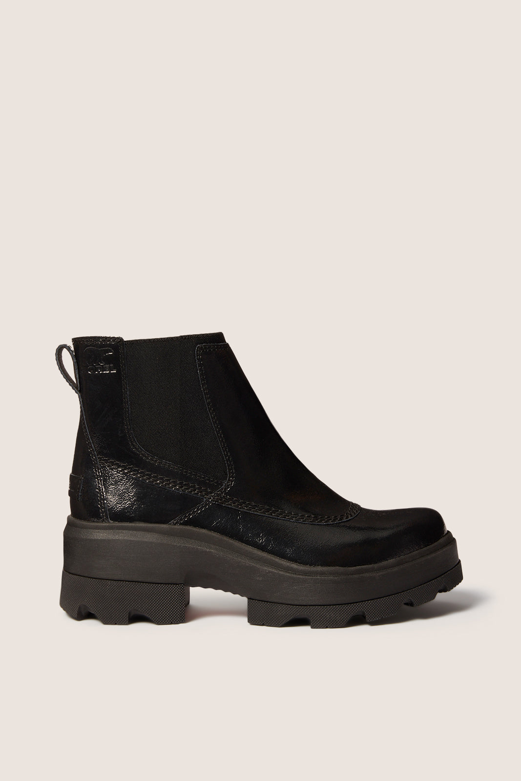 Finished in full-grain. water-resistant leather. these SOREL Chelsea boots will take your winter style up a notch. The Joan FRWD Chelsea features a bold platform sole. comfortable EVA footbed. and elastic gore for easy on-and-off.