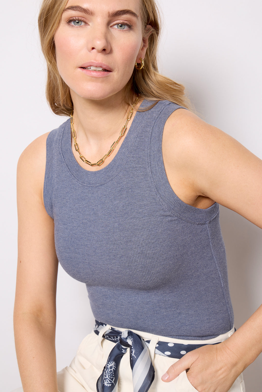 A versatile wardrobe staple. this LNA tank features a fitted crewneck silhouette in double-layered. soft rib knit fabric. Wear it alone or under your favorite layer.