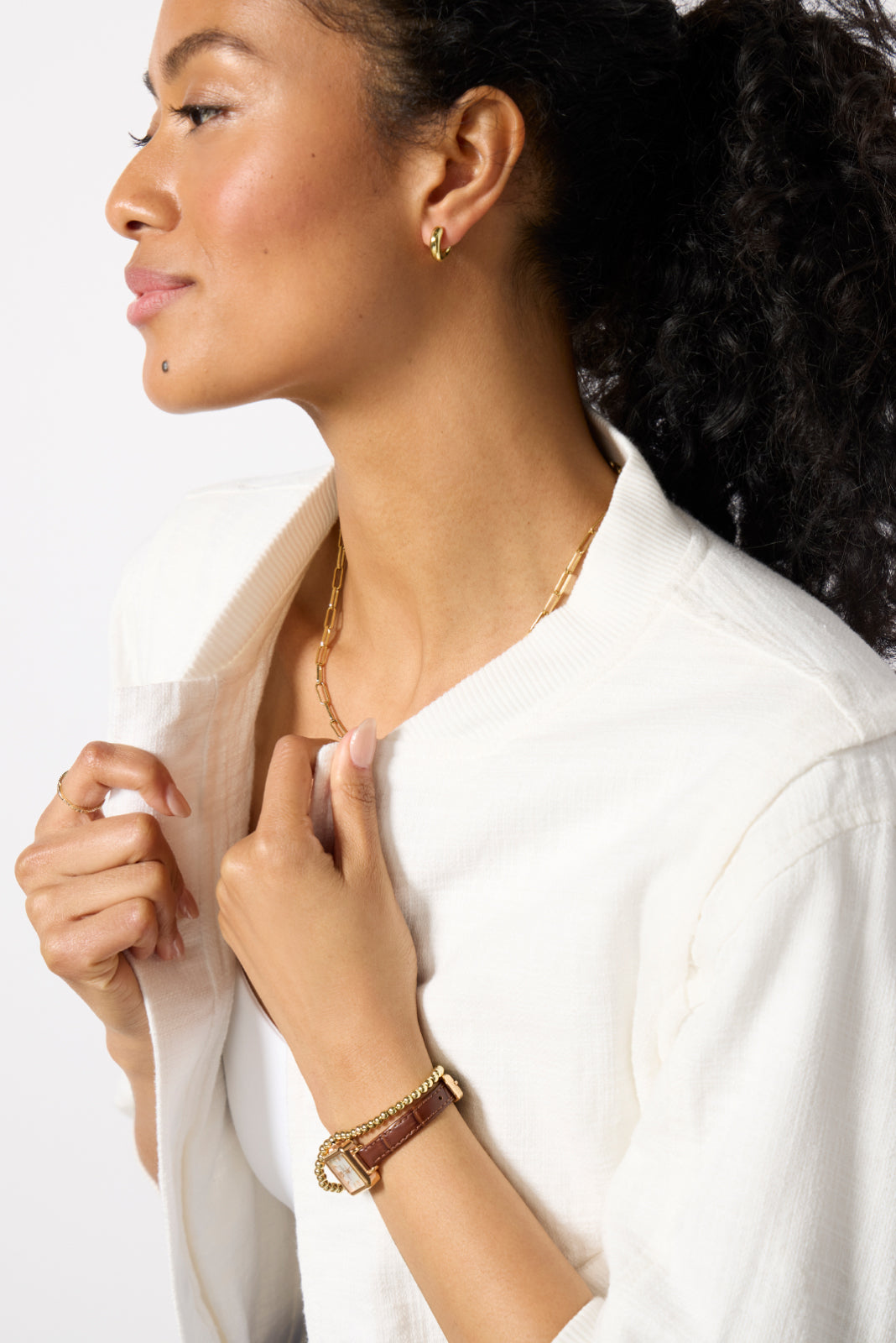 Refresh your layering collection with the Jordan Bomber Jacket by Bobi. Finished in textured cotton fabric. this chic jacket features a snap-front silhouette with side pockets. three-quarter sleeves. and rib knit trim.