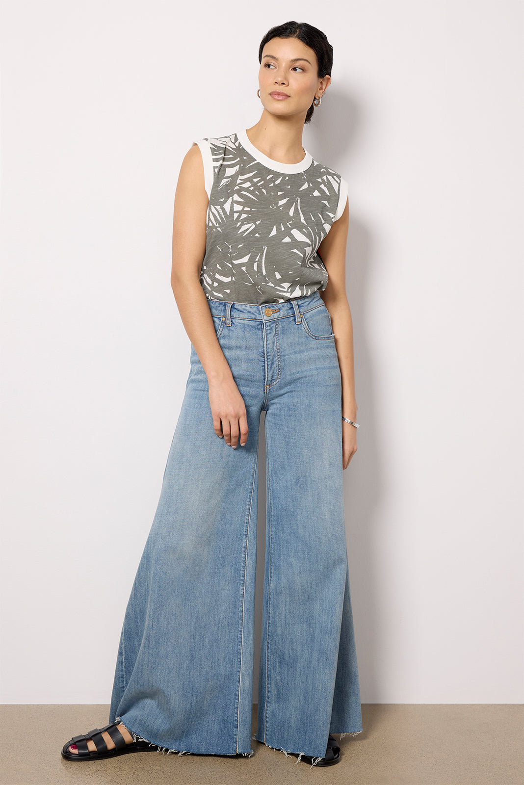 An allover palm print takes center stage on the Kalani tank by EVEREVE. Perfect for your warm-weather wardrobe. this sporty-chic tank is crafted in cotton slub fabric with a cropped length. ribbed trim. and varsity side stripes for a fun pop of color.