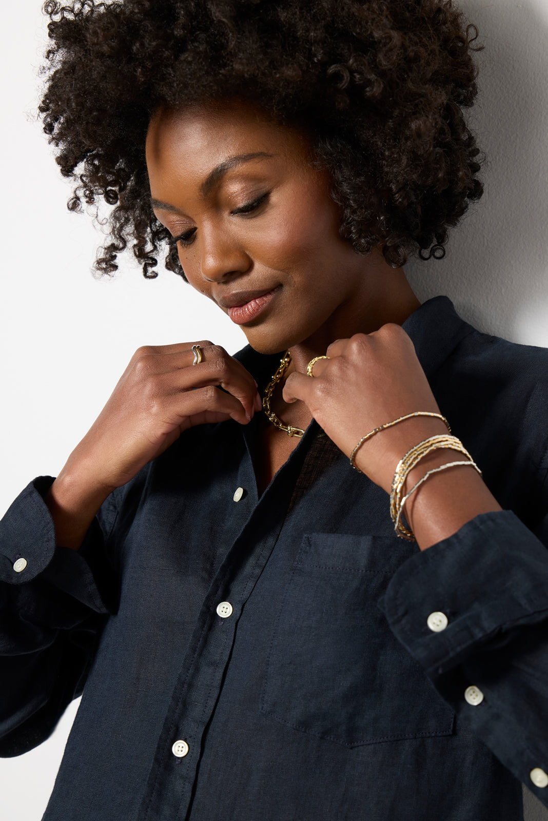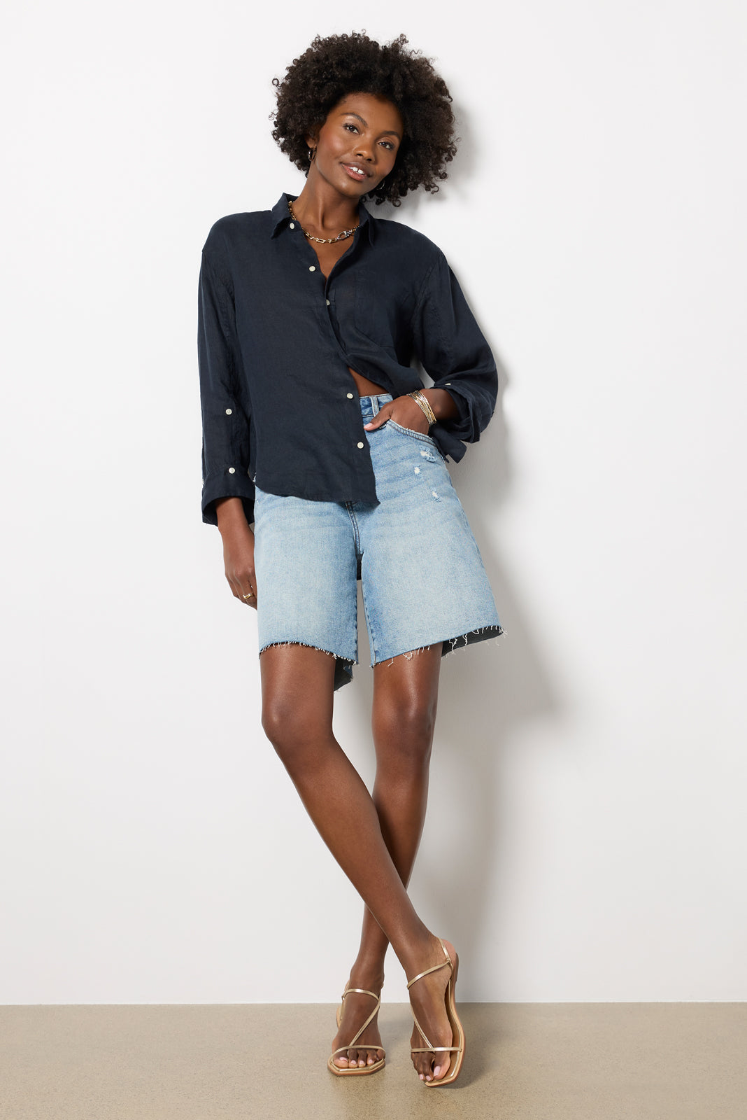 A slim fit and shorter length update the endlessly versatile Kayla Shirt by Citizens of Humanity. This classic button-down is crafted in breezy linen with high side slits and a left chest pocket.