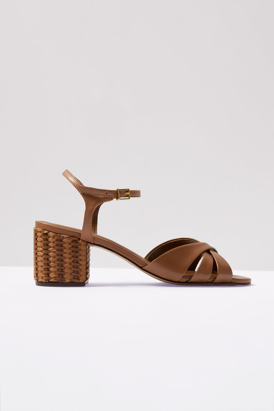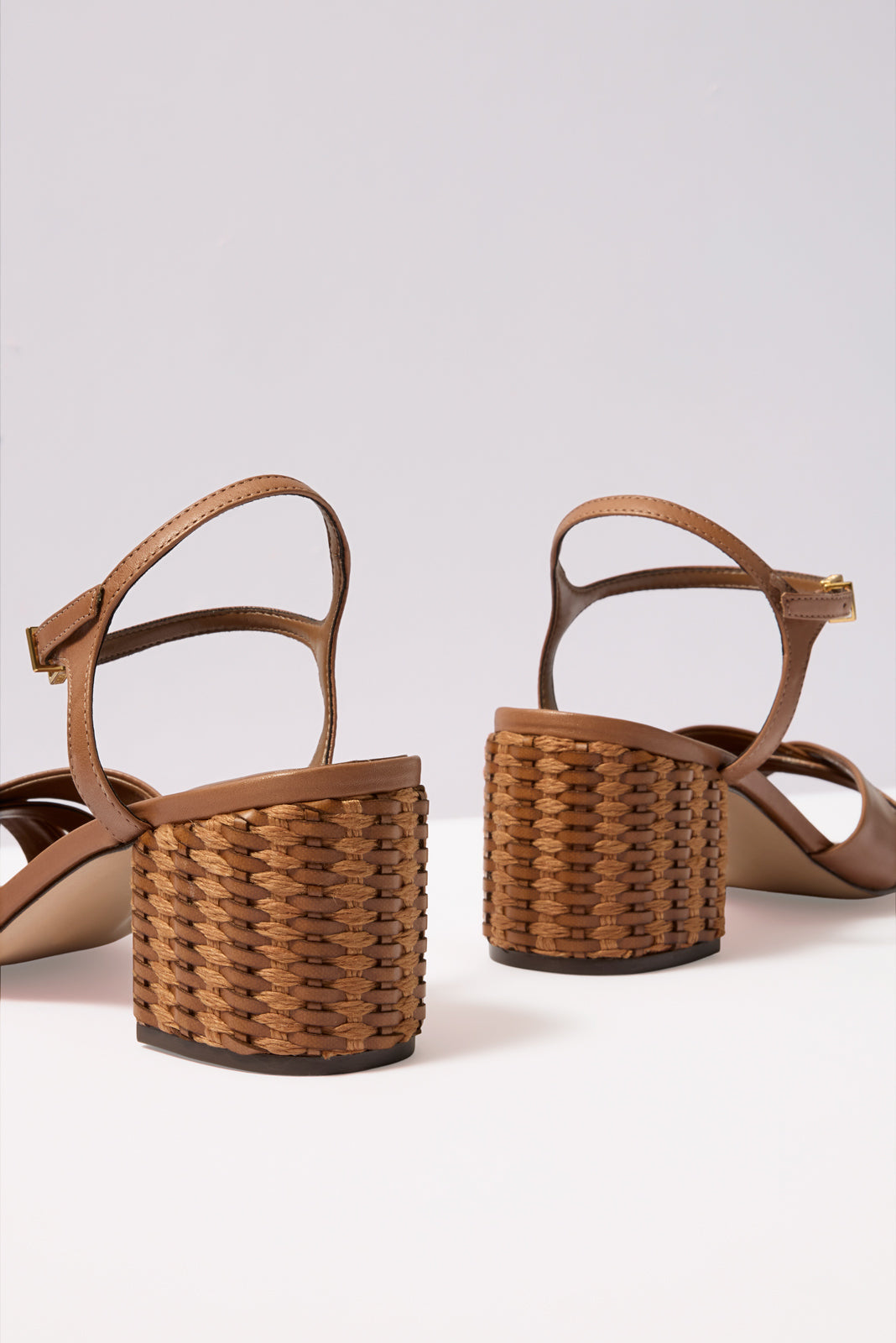 Elevate any warm-weather look with the Keefa sandal by Schutz. featuring an adjustable ankle strap. almond-shaped toe. and woven block heel for a touch of texture.