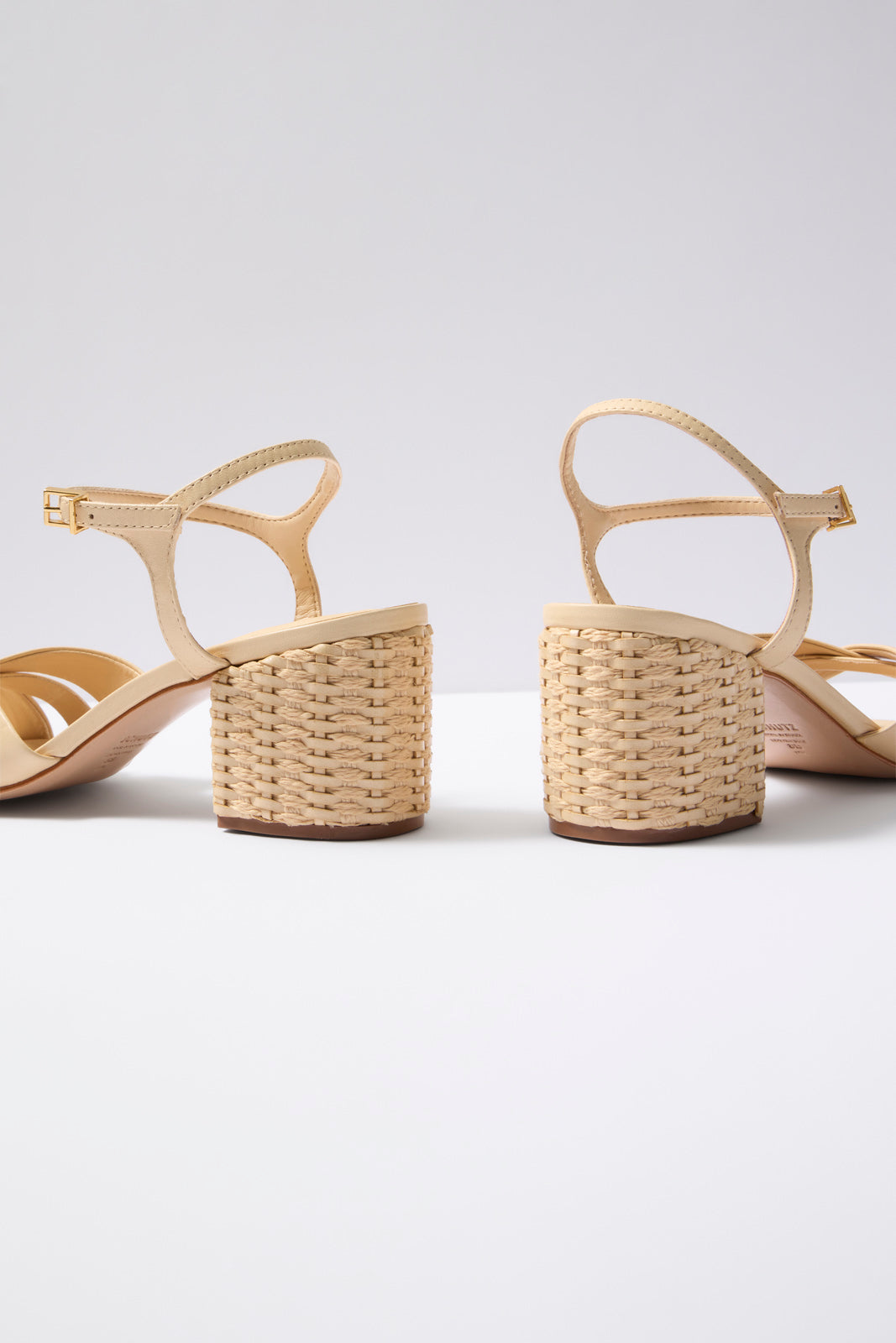 Elevate any warm-weather look with the Keefa sandal by Schutz. featuring an adjustable ankle strap. almond-shaped toe. and woven block heel for a touch of texture.