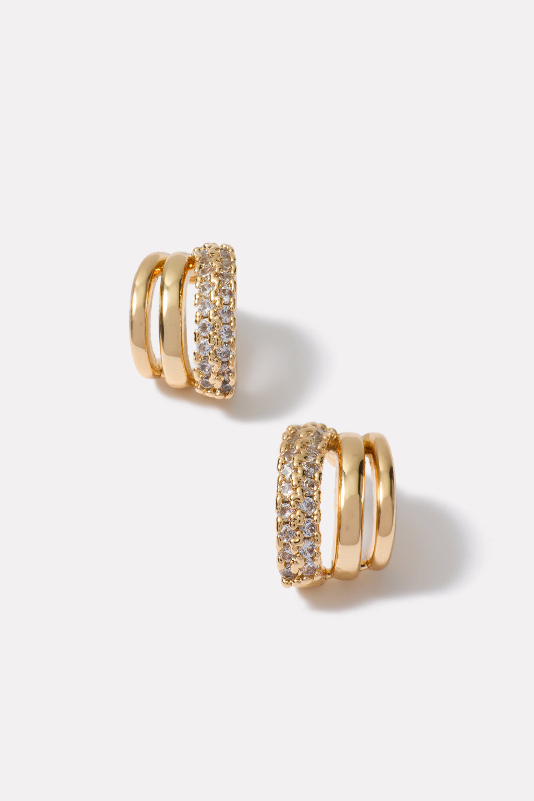 Give your look a subtle hint of sparkle with these huggie earrings by Luv AJ. featuring a triple hoop design and 14k gold plated finish.