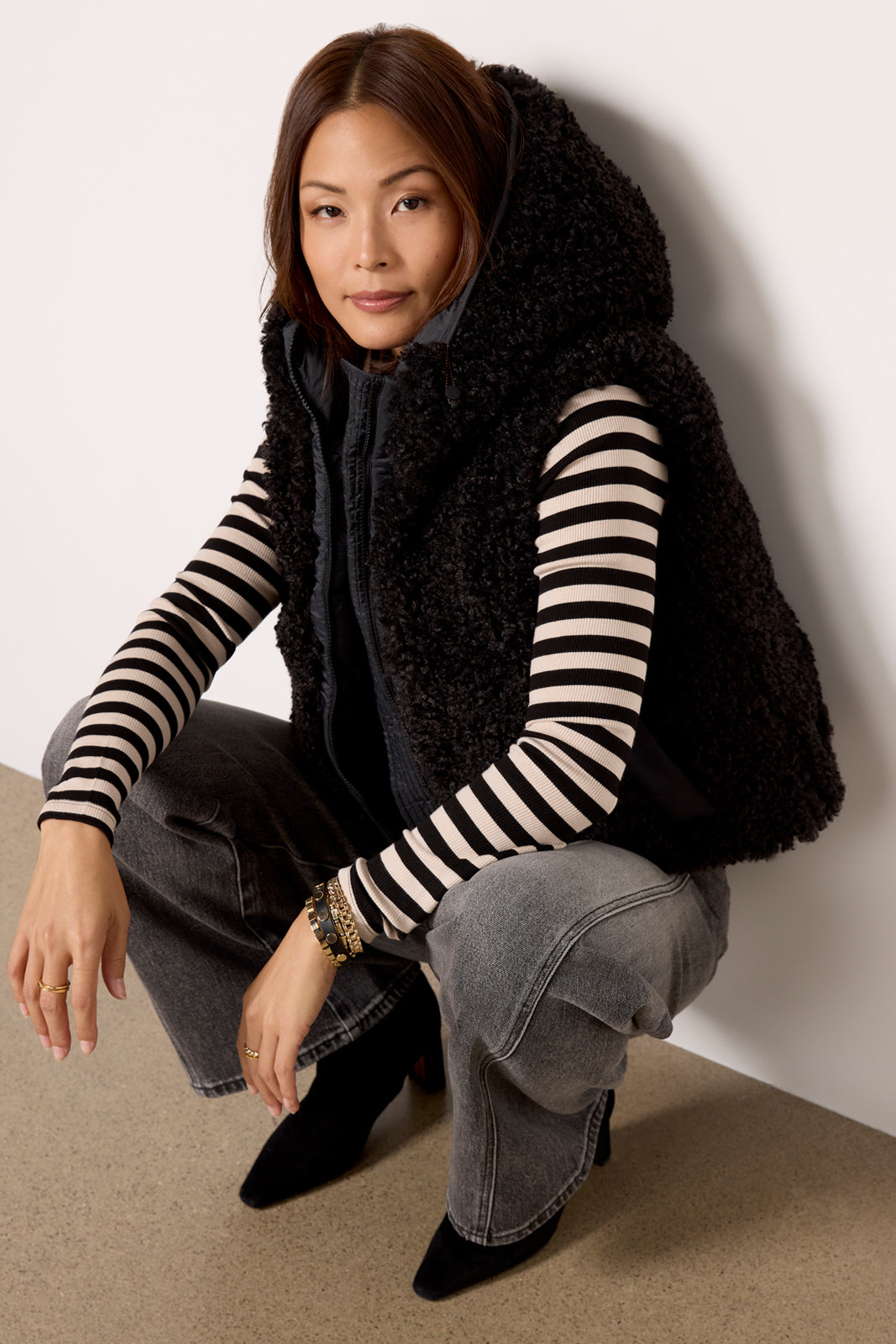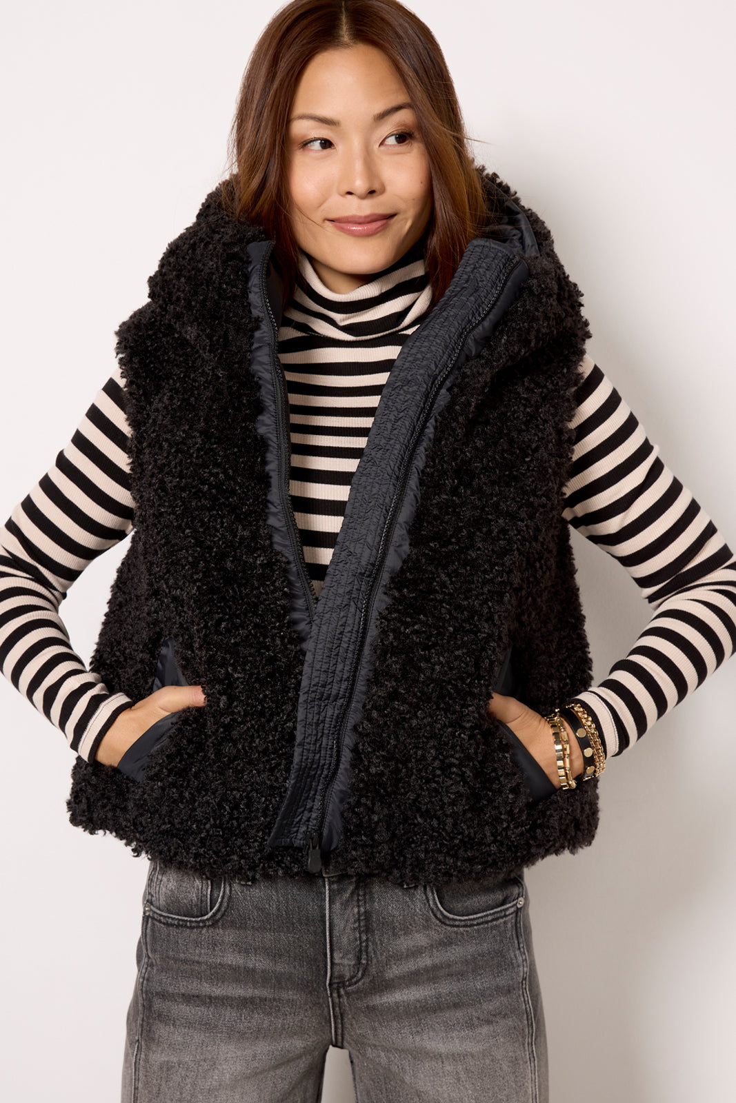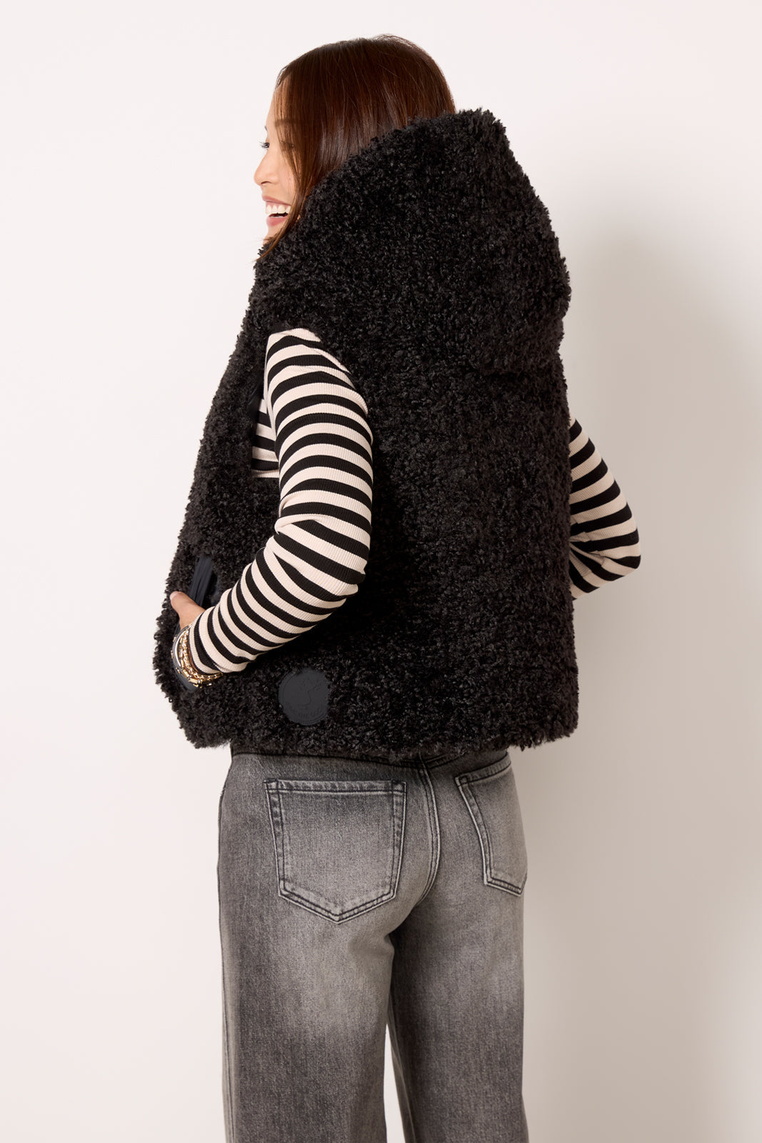 Stay cozy with the Klara vest by Save The Duck. Finished in soft faux shearling. this hooded vest features a two-way zipper closure. side pockets. and animal-free padding for extra warmth.