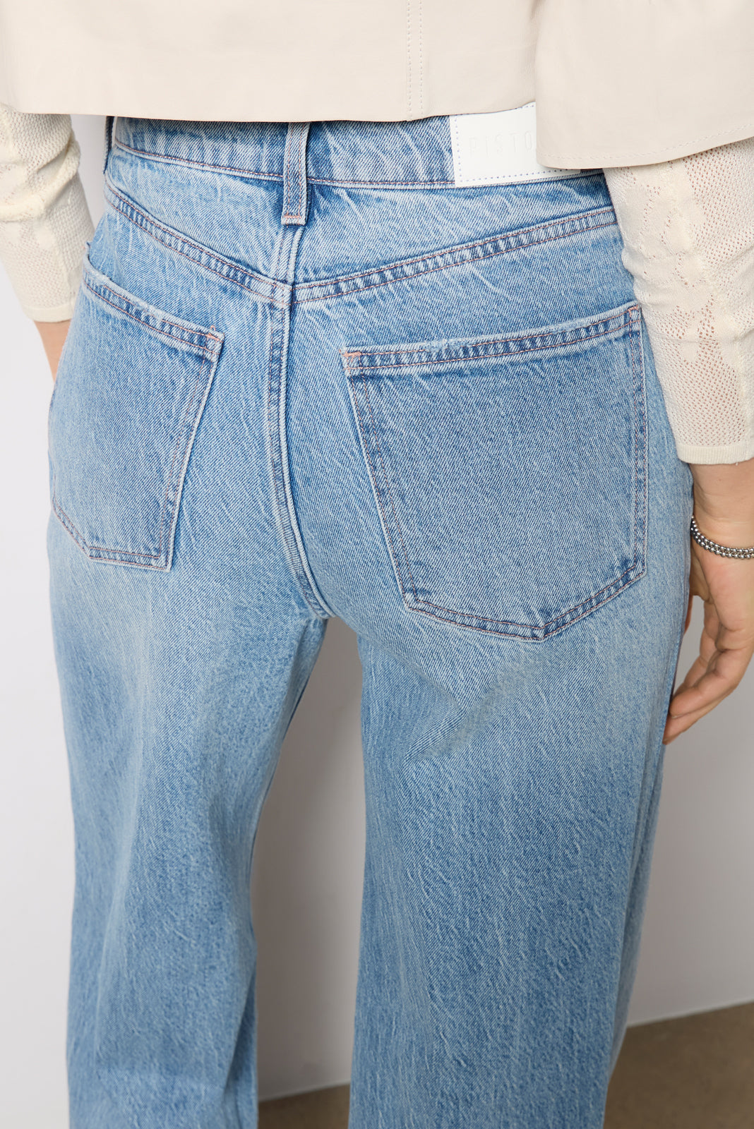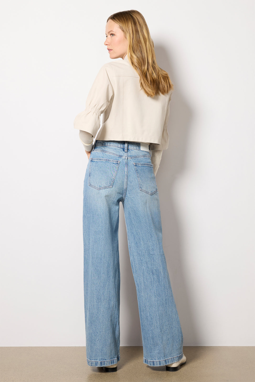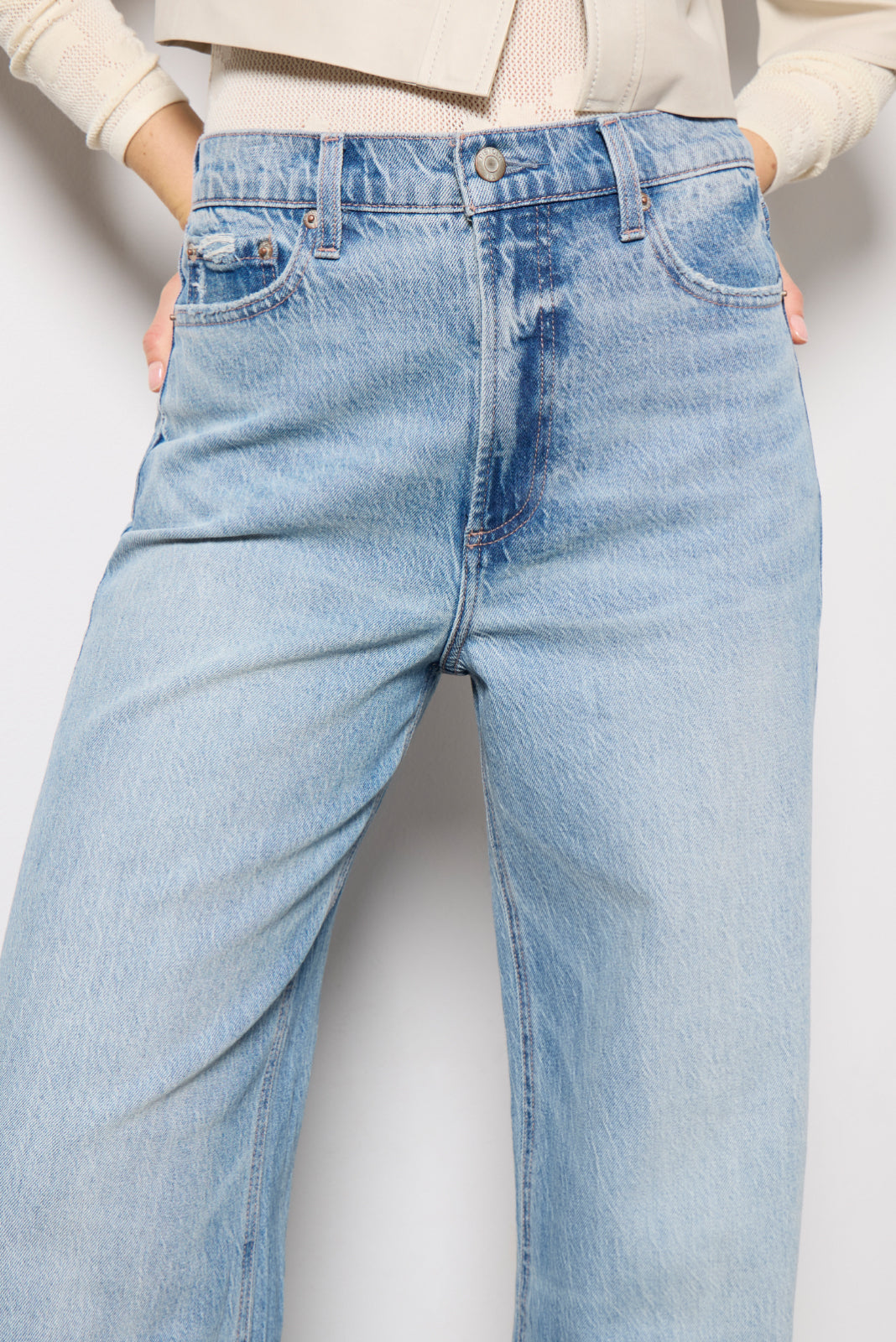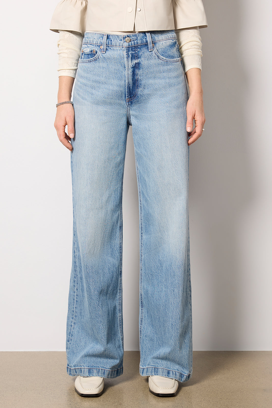 Crafted in a soft stretch cotton. the Lana Wide Leg Jean from Pistola features a full-length inseam with a trouser hem. a high-rise fit. and a clean light blue wash.