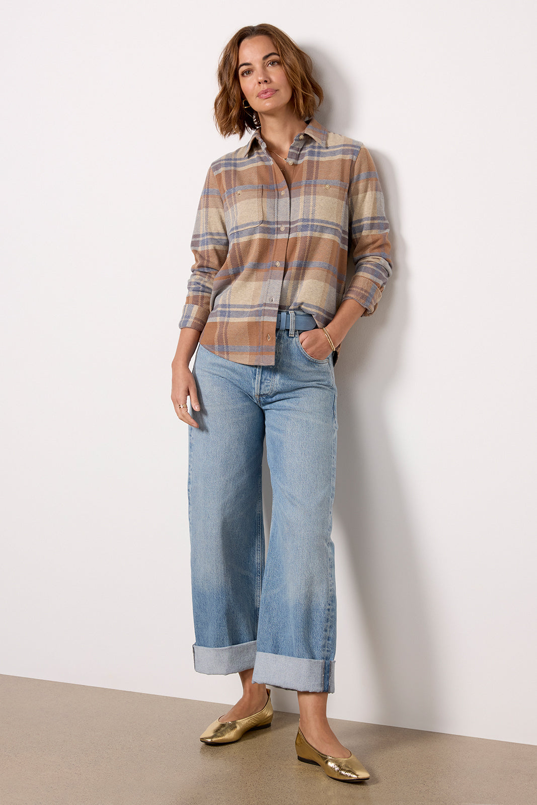 Crafted in the softest sweater knit fabric. you'll be reaching for this Faherty button-down again and again. Perfect alone or layered. this cozy plaid shirt features a shirttail hem. long sleeves. and patch chest pockets. Front-tuck into your favorite denim or wear unbuttoned over a tank.