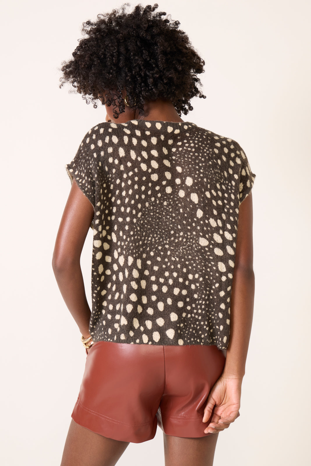 A subtle animal print defines the Loma Sweater by LNA. featuring a crew neckline. cap sleeves. and a slightly cropped silhouette.