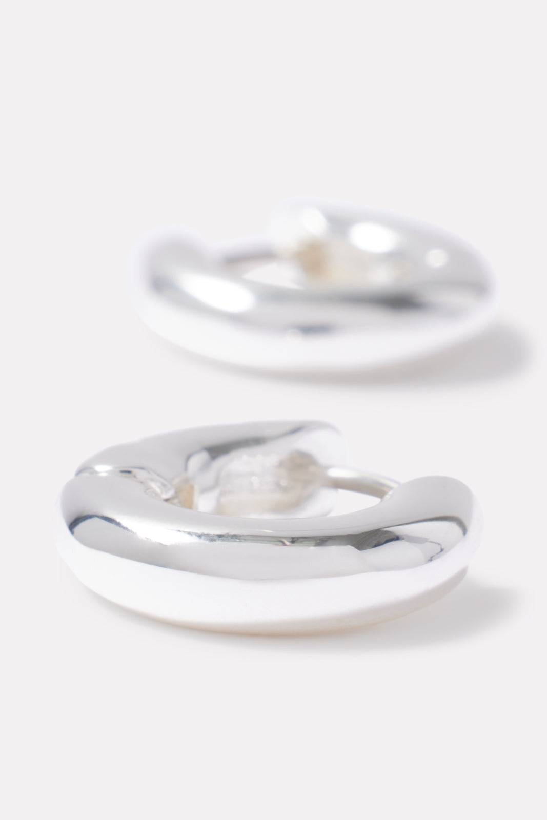 Small but bold. these silver hoops by Gorjana really pack a punch. crafted from brass with a hinge style closure.