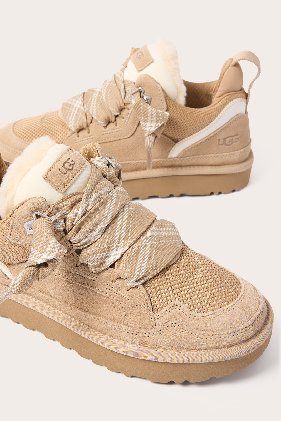 Elevate your fall footwear collection with the Lowmel sneaker by UGG®. featuring a suede and mesh upper. cozy UGGplushâ„?lining. and a comfortable EVA sole. The chunky laces are designed to be worn loose for a relaxed. effortless look.