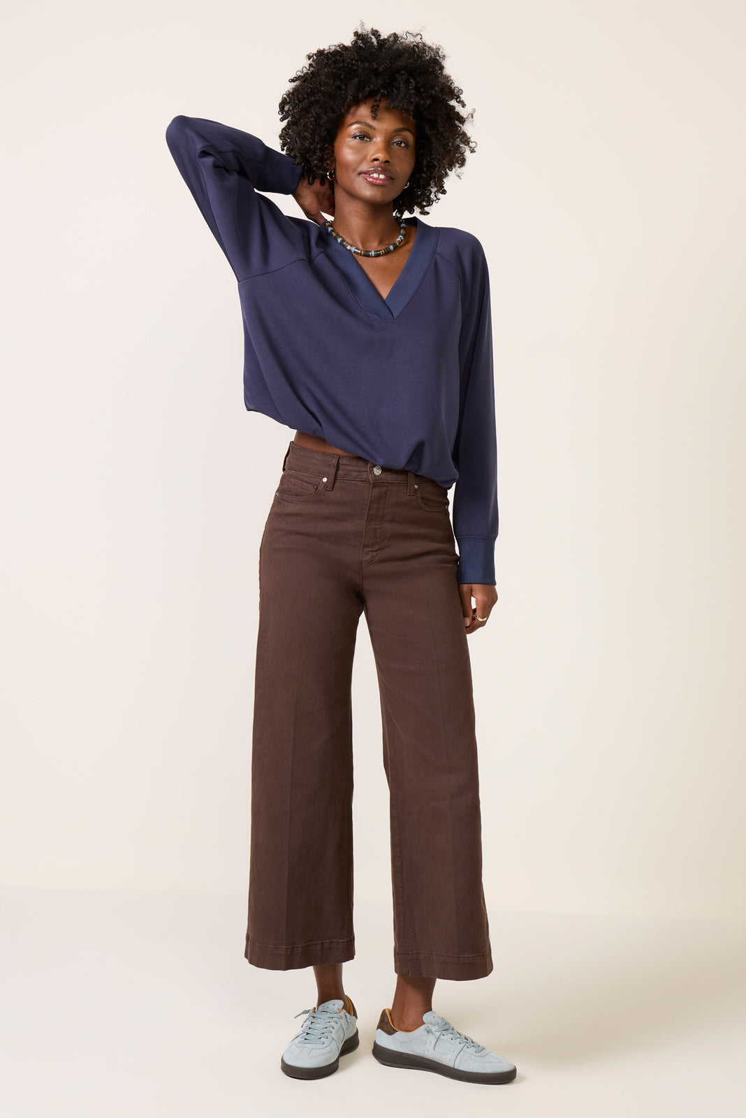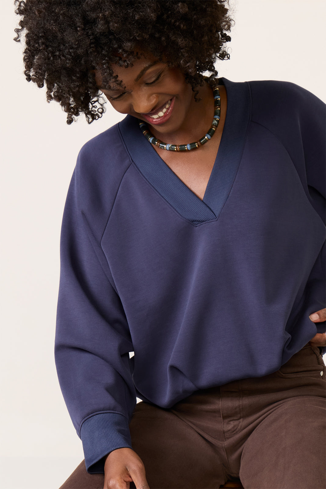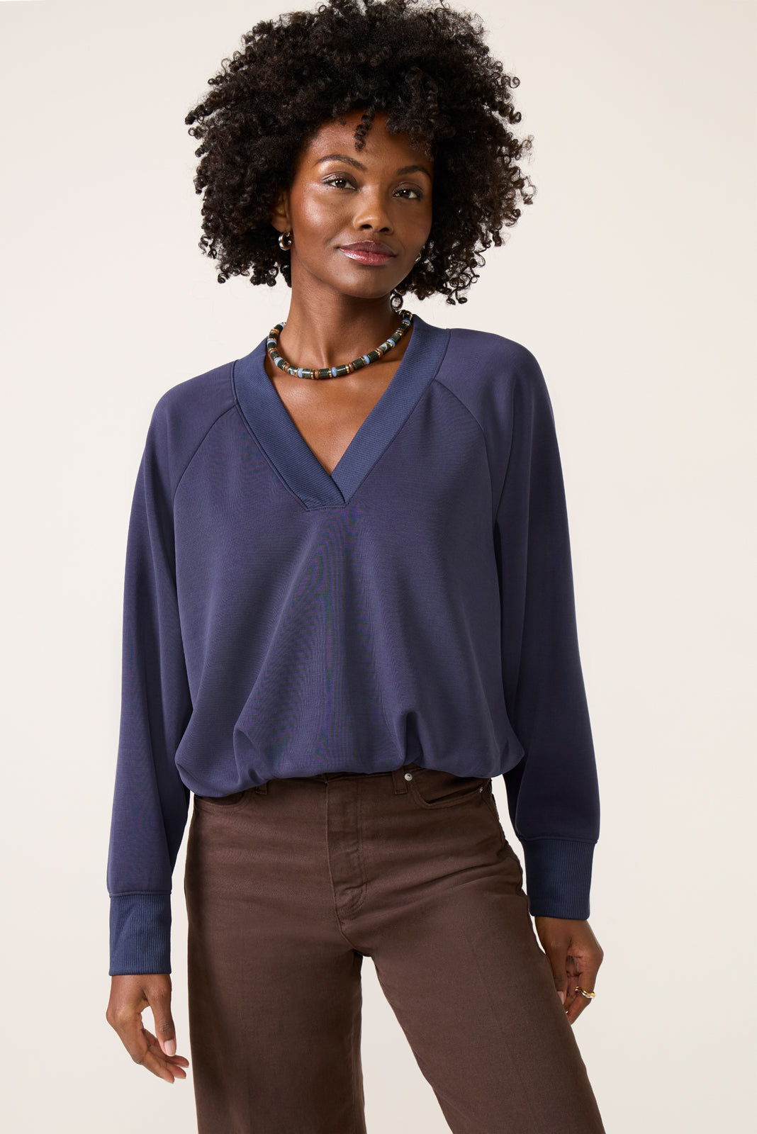 Finished in silky-soft knit fabric. this easy-to-love sweatshirt by EVEREVE features a relaxed silhouette with a gathered hemline. raglan sleeves. and rib knit trim—perfect for your everyday rotation.
