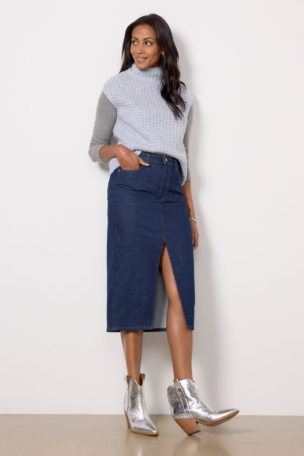The perfect layer for fall. the Maisie Vest will be a wardrobe staple this season. featuring a waffle knit design. mock neckline. and a subtle cap sleeve. You'll love it paired over a long-sleeve tee or worn on its own.