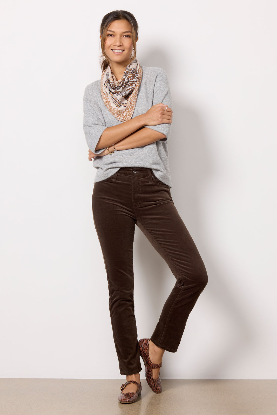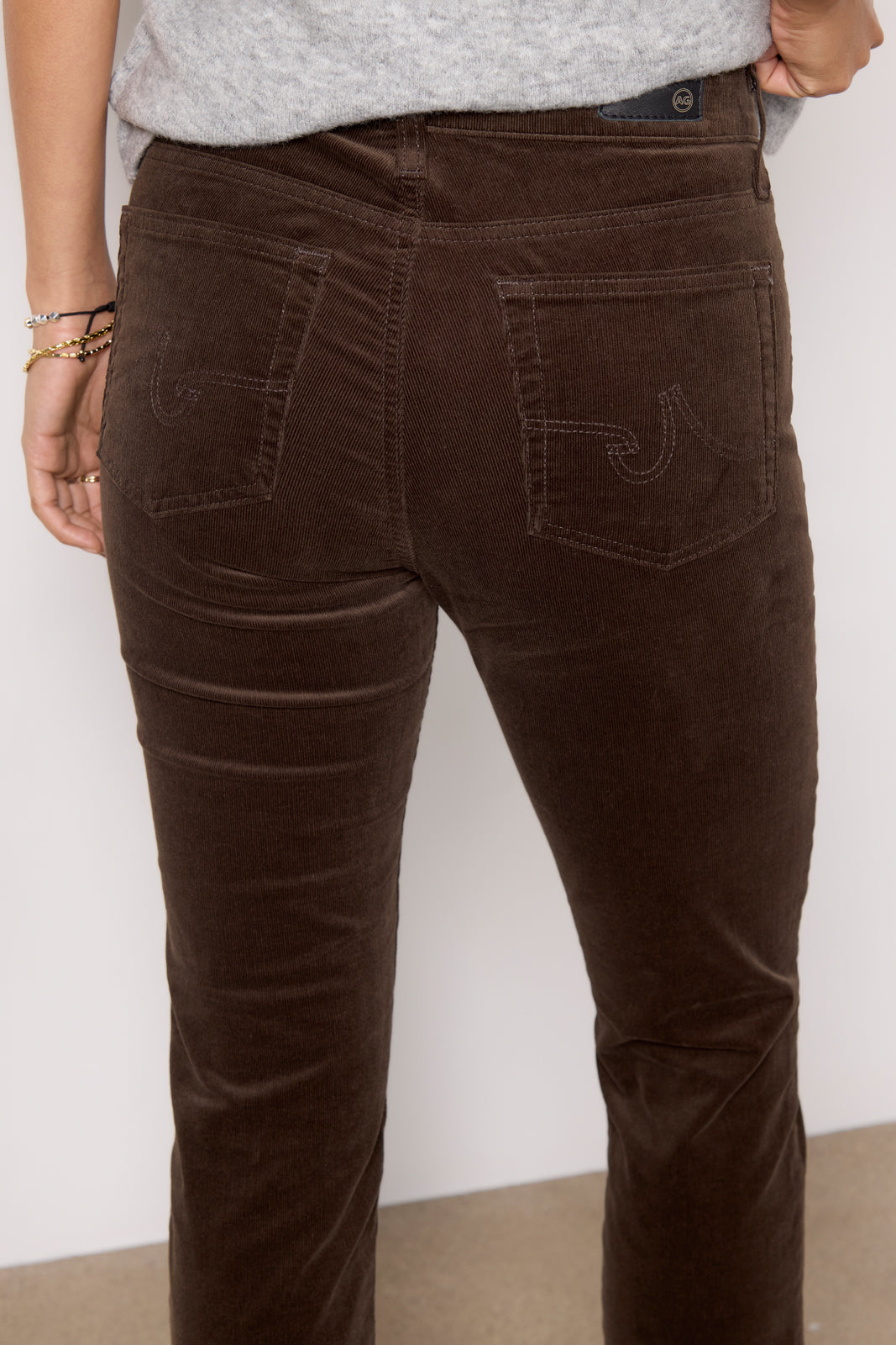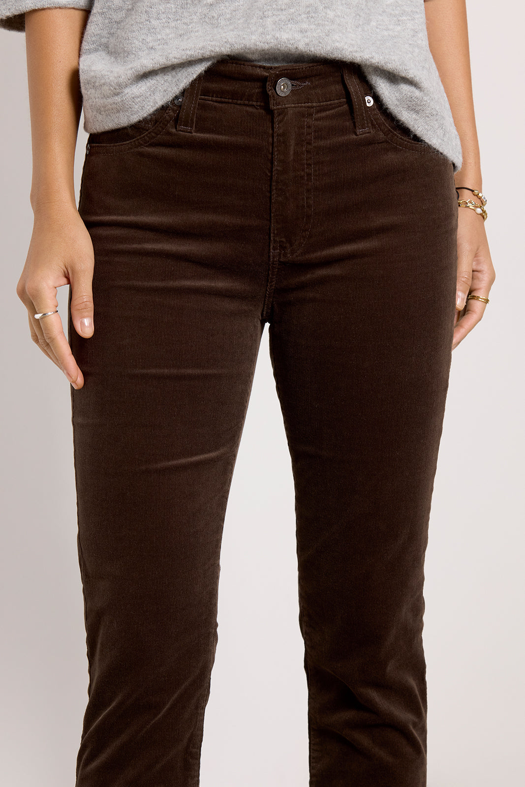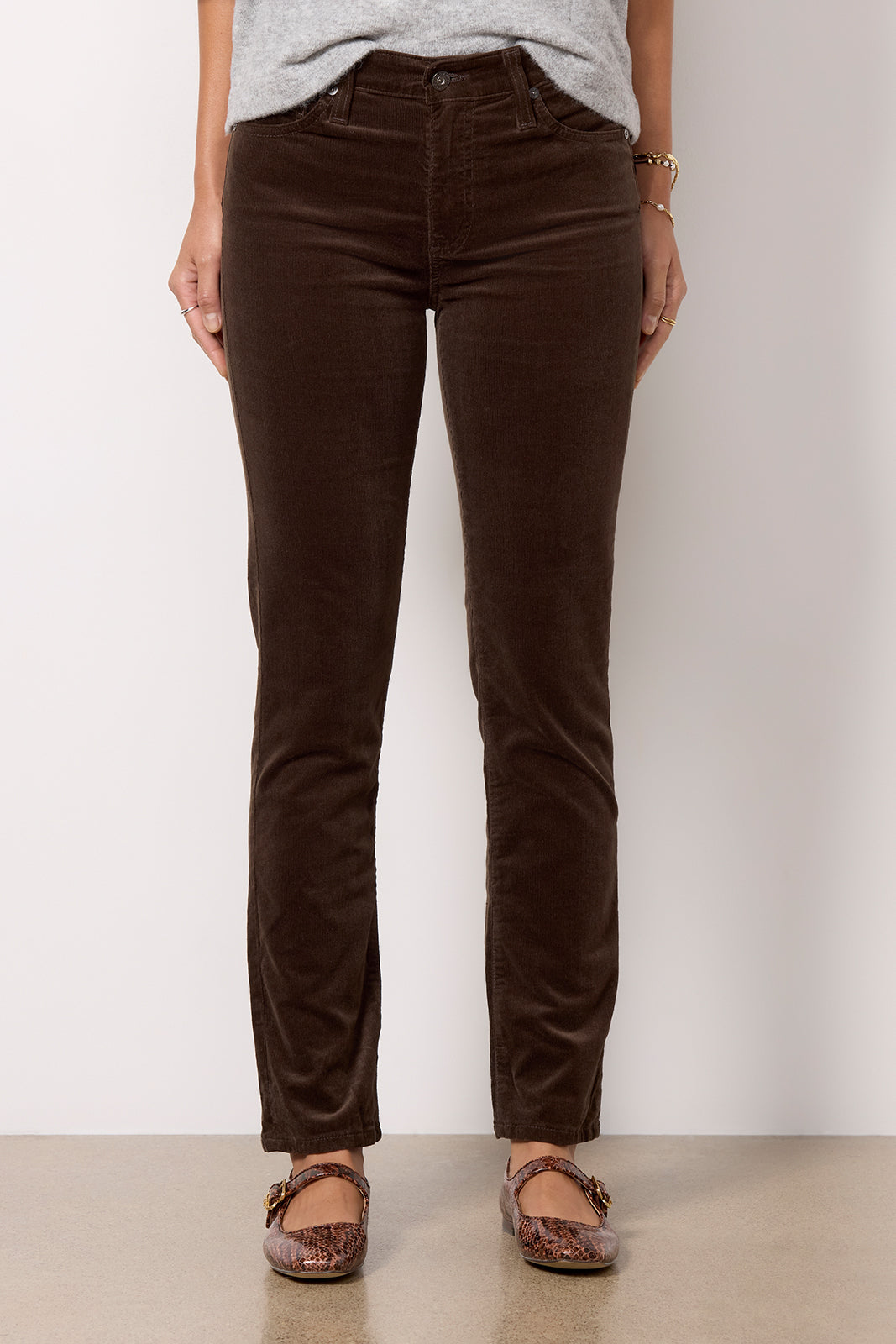 Rich brown corduroy fabric makes these AG pants the perfect pick for fall. The Mari features a slim straight leg. mid-rise waist. and full-length hems. Style for the season with a button-down or cozy sweater.
