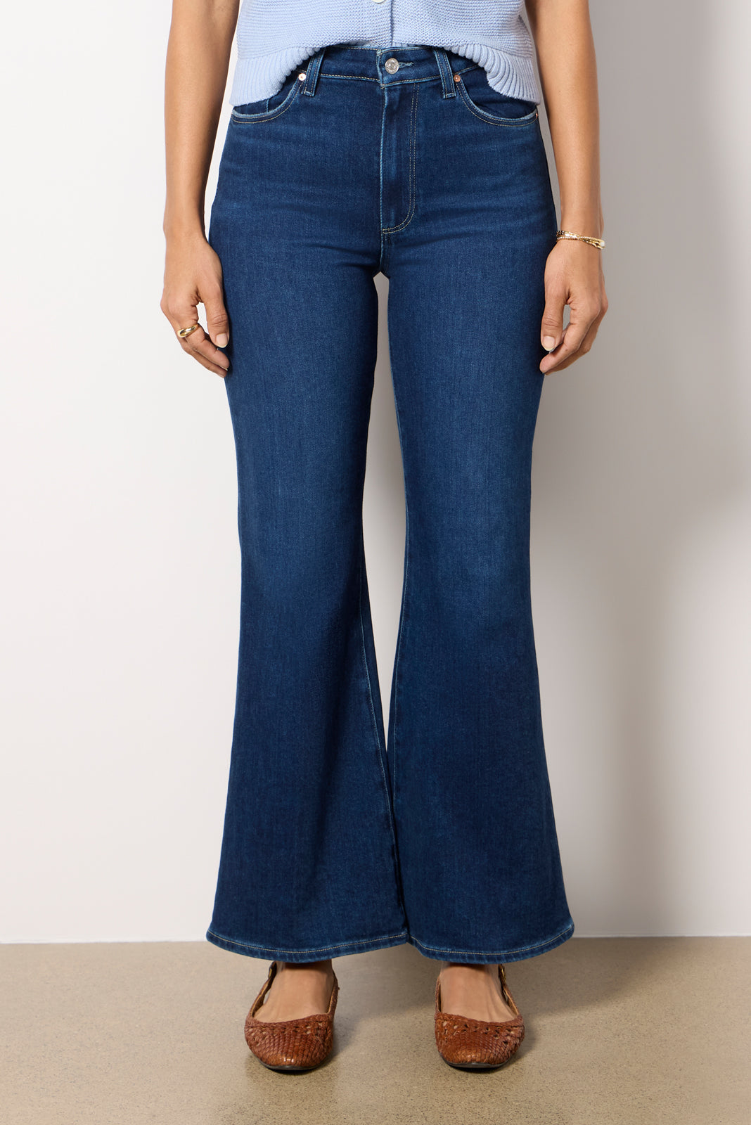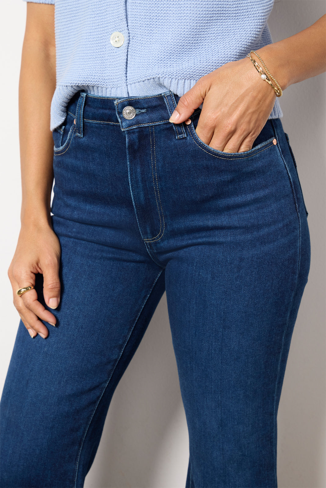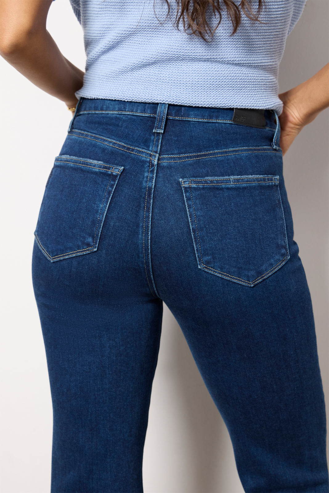 Designed to fit and flatter. the Marlow Skimmer flare jean by Paige is crafted in soft cotton-blend denim with a high-rise waist. dark blue wash. and clean hems.